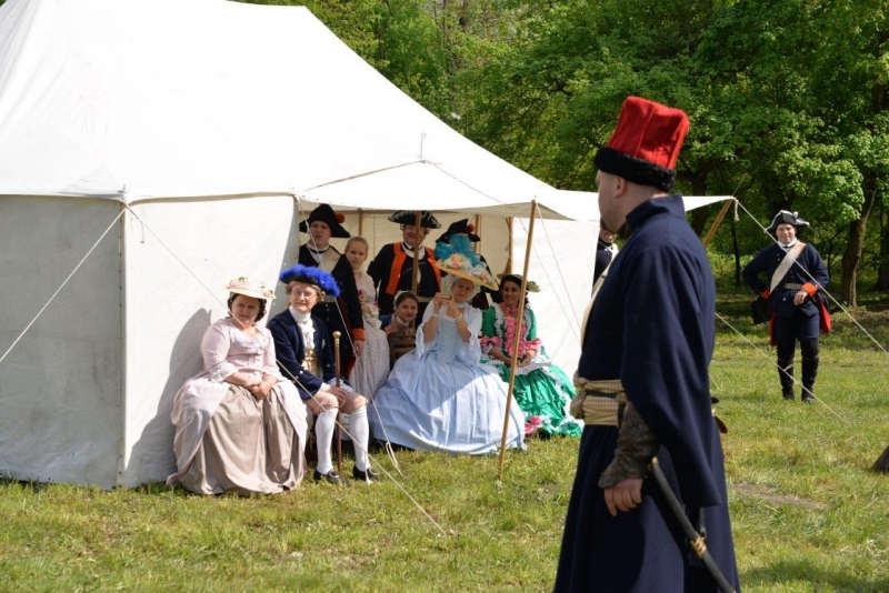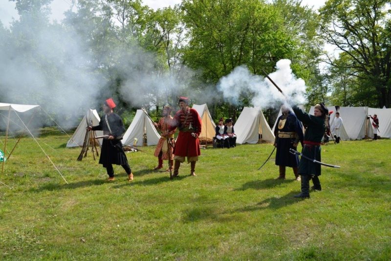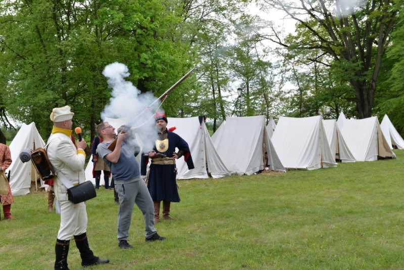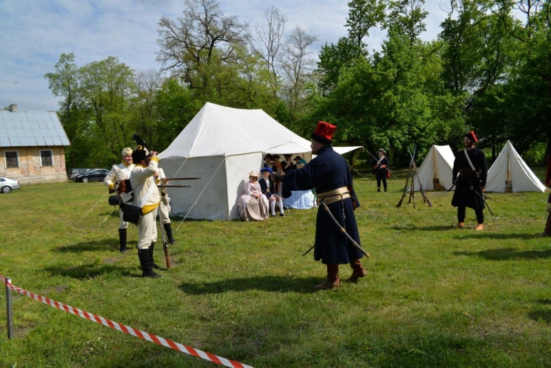 z okresu nazwanego napoleońskim rozpoczął Tomasz Omilianowski od prezentacji mundurów polskiego, francuskiego i pruskiego wraz z omówieniem podstawowych ich różnic. Największą grupę wojska przećwiczył kpt. Marek Gniewek, dowódca Legii Polsko Włoskiej z Nysy, której sporą część stanowił oddział połaniecki. Odmienne komendy, tym razem w języku niemieckim rozbrzmiewały podczas musztry Regimentu garnizonowego nr 6 z Koźla im. Von Lattorff, dowodzonego przez Piotra Paisdziora. Część dla „chłopców” zakończyła potyczka wojsk napoleońskich z żołnierzami pruskimi i austriackimi. Było dużo huku, dymu i ofiar. Na szczęście tylko na niby. Po bitwie widzowie mogli zwiedzać obóz żołnierski i podziwiać wyposażenie namiotów sztabowych. Ostatnia część imprezy