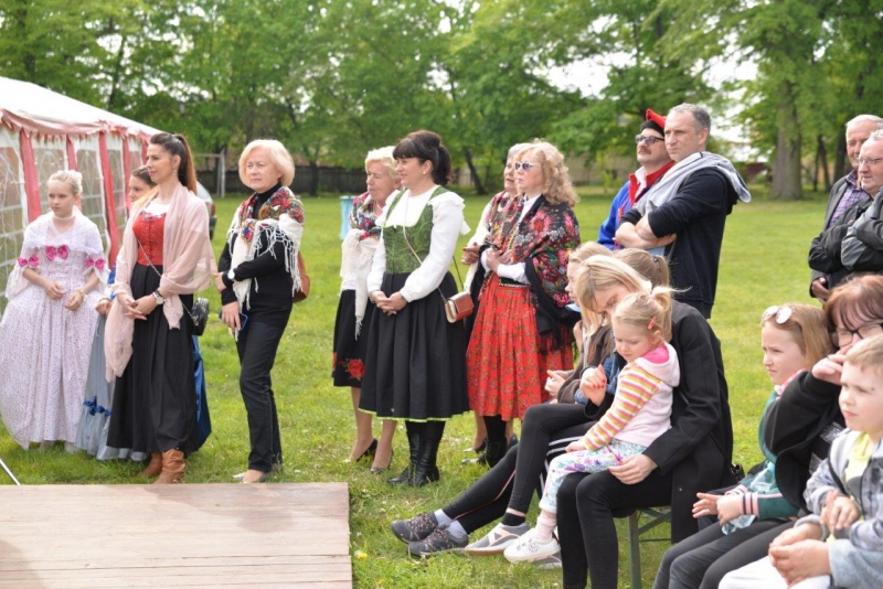 wprowadziły widzów na salony wielkich pałaców prezentując tańce z grupy kontredanse. Takich sukni i strojów jeszcze chyba nikt nie prezentował w naszej gminie. Tańce spokojne i dostojne nie były wcale proste do odtańczenia, o czym przekonali się uczestnicy późniejszych warsztatów. Zgoła odmienne, pełne ekspresji były tańce zaprezentowane przez dziewczyny z grupy