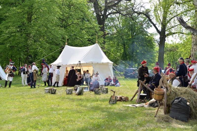 dopełniła klimatu tworzonego przez bryłę dworku oraz otaczającego go parku, a stworzona została przez szereg żołnierskich namiotów. Obóz zamykały po przeciwnych stronach namioty sztabowe Napoleona i cesarza Prus, a w niewielkiej odległości od nich ulokowany został obóz wojsk powstańczych, nawiązujących do czasów walk o niepodległość.