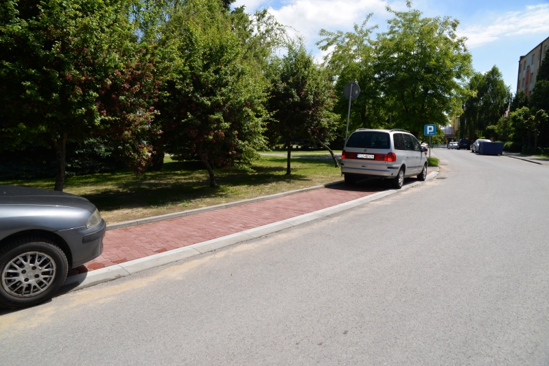 Zadanie 2: Polegało na budowie 5 zatok po 10 miejsc postojowych w tym 1 zatoka z 6 miejscami postojowymi w ciągu drogi gminnej przy ul. Witosa.