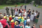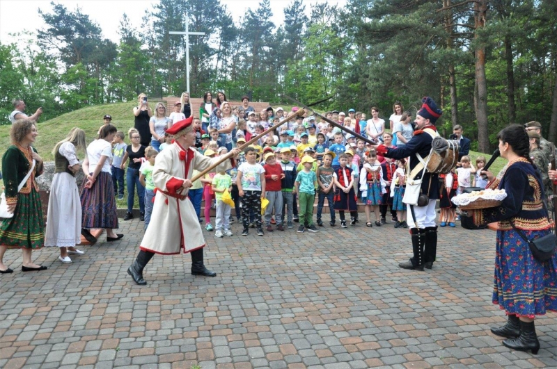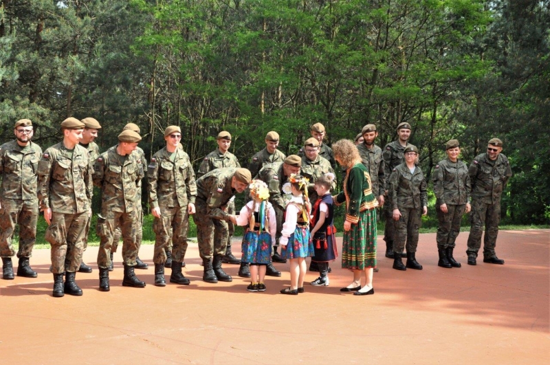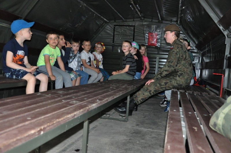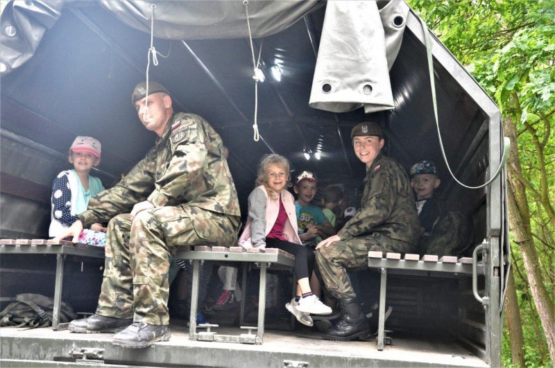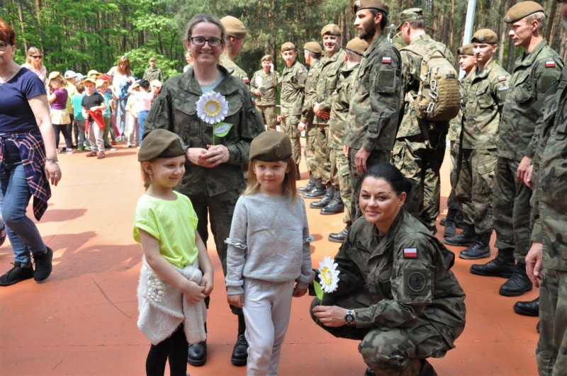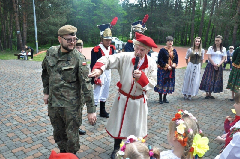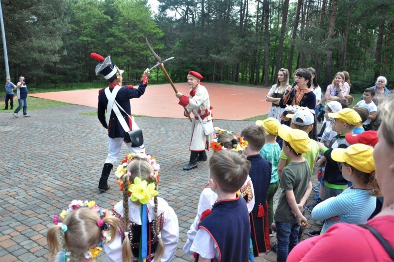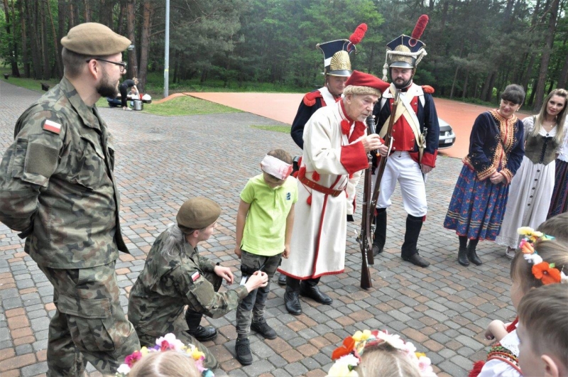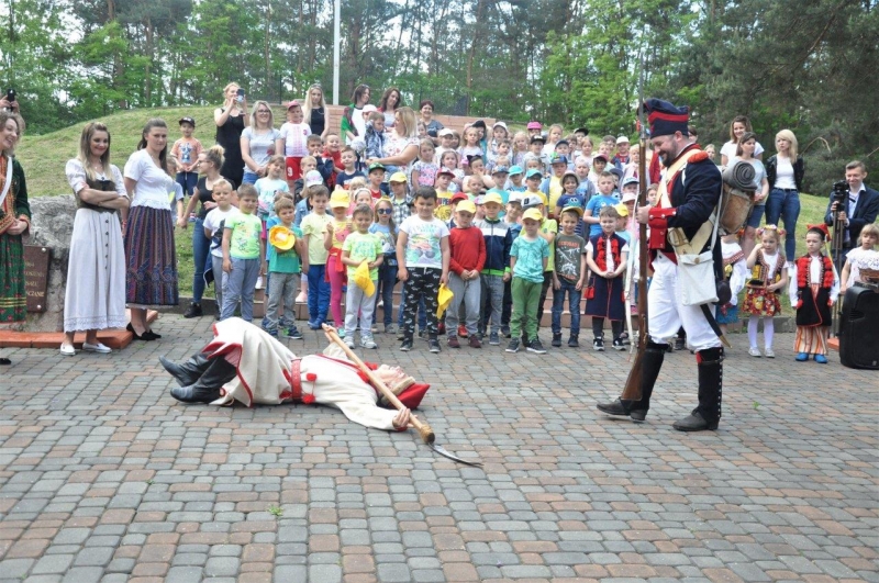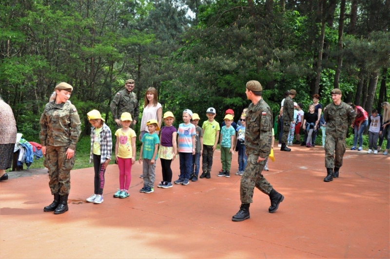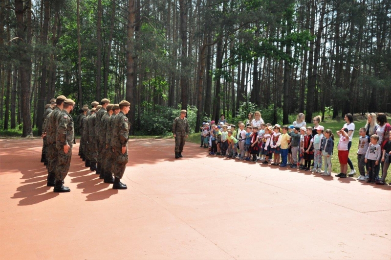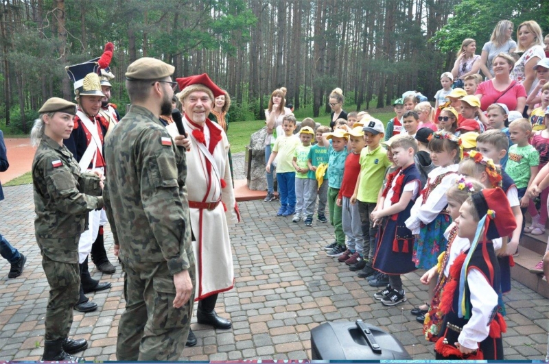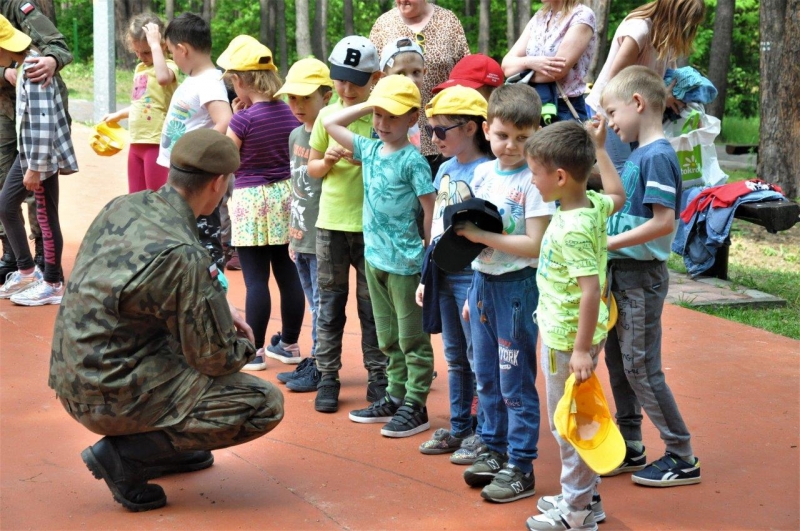 Członkowie Towarzystwa Kościuszkowskiego w Połańcu oraz przedstawiciele Świętokrzyskiego Batalionu Wojsk Obrony Terytorialnej opowiedzieli dzieciom o poszczególnych elementach umundurowania poszczególnych żołnierzy. Odbył się również pokaz uzbrojenia oraz ekwipunku, a także mała pozorowana walka wręcz. Dzieci bardzo chętnie zadawały i odpowiadały na pytania, a także brały udział w pokazie uzbrojenia. Przedszkolakom bardzo zaimponowała musztra żołnierska, w której wzięły czynny udział. Sporą niespodzianką dla najmłodszych był pokaz nabijania broni oraz wystrzały z karabinów czarnoprochowych żołnierzy połanieckiego oddziału Legii polsko-włoskiej. Następnie dzieci wzięły udział w grach i zabawach razem z kilkunastoma wojskowymi z Wojsk Obrony Terytorialnej. Tańczących i uśmiechniętych przedszkolaków odwiedził również Burmistrz Miata i Gminy Połaniec Jacek Tarnowski wraz z Dyrektor CkiSz w PołańcuJoanną Juszczyńską.