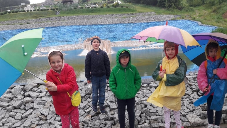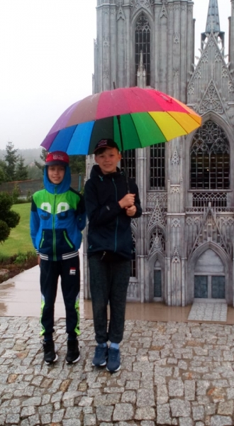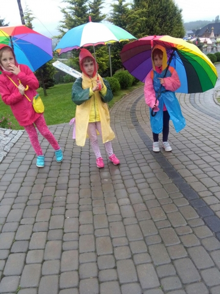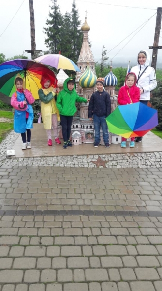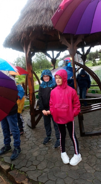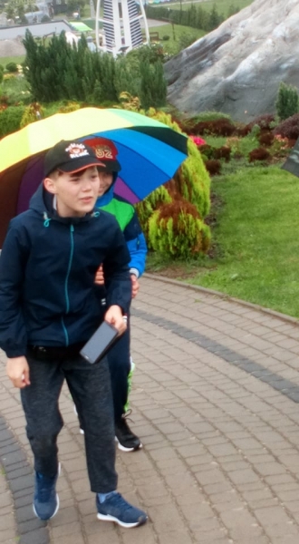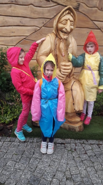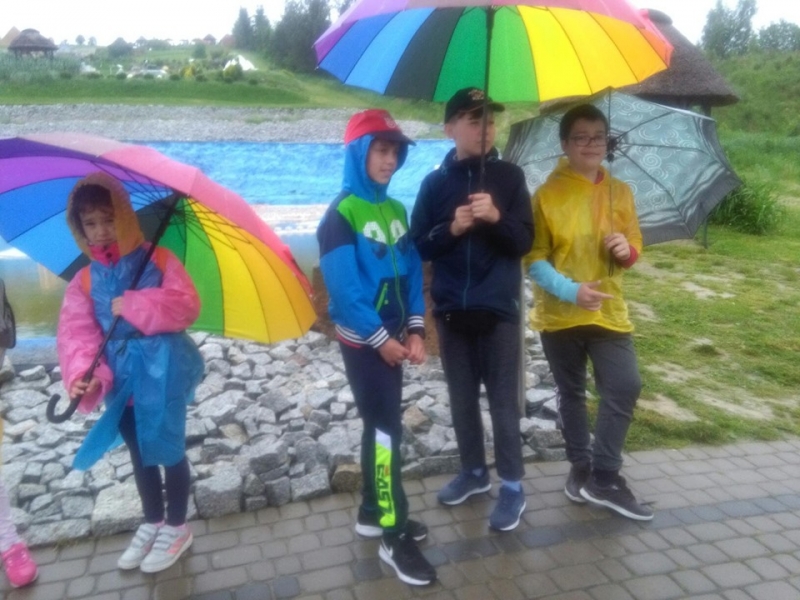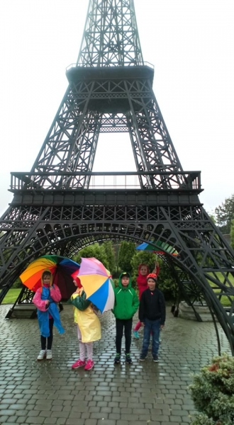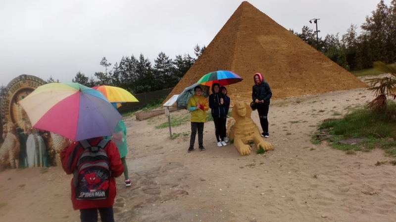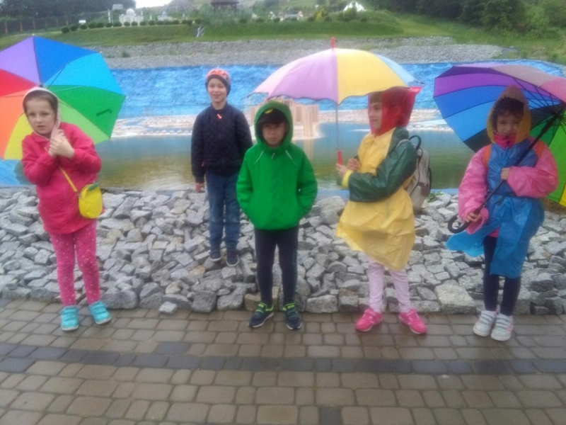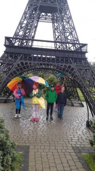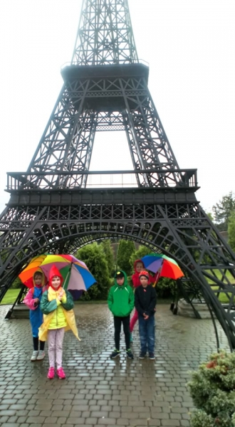 Pogoda tego dnia nas nie rozpieszczała, już w czasie jazdy rozpadało się. Kiedy przybyliśmy na miejsce , nadal padał deszcz. Chwilę czekaliśmy w autobusie, aby nie zmoknąć. Po kilku minutach wyszliśmy i ruszyliśmy w stronę Parku Miniatur. Dostaliśmy tam parasole i weszliśmy do parku. Widzieliśmy tam: Statuę Wolności, Wieżę Eiffla, Big Bena Katedrę Notre- Dame oraz wiele innych znanych i charakterystycznych budowli z całego świata. Było nam nieco przykro, że nie było żadnej miniaturowej budowli z Polski. Później wybraliśmy się do kina 6D. Obejrzeliśmy tam fascynujące seanse. Następnie poszliśmy na lekcję edukacyjną. Uzupełnialiśmy wierszyk oraz w prosty sposób wyznaczaliśmy kierunki. Po lekcji ponownie wróciliśmy do kina. Później pojechaliśmy do Kielc, aby zjeść ciepły posiłek. W restauracji każdy wybrał coś smacznego. Po nieco wydłużonym czasie spędzonym w zaciszu restauracyjnym wróciliśmy do Kraina. Poszliśmy do Lunaparku, gdzie czekało na nas sporo atrakcji. Skakaliśmy na trampolinach oraz jeździliśmy elektrycznymi samochodzikami. Po kilku godzinach świetnej zabawy dotarliśmy do autobusu i wyruszyliśmy w drogę powrotną do Zrębina. Spod szkoły odebrali nas rodzice.