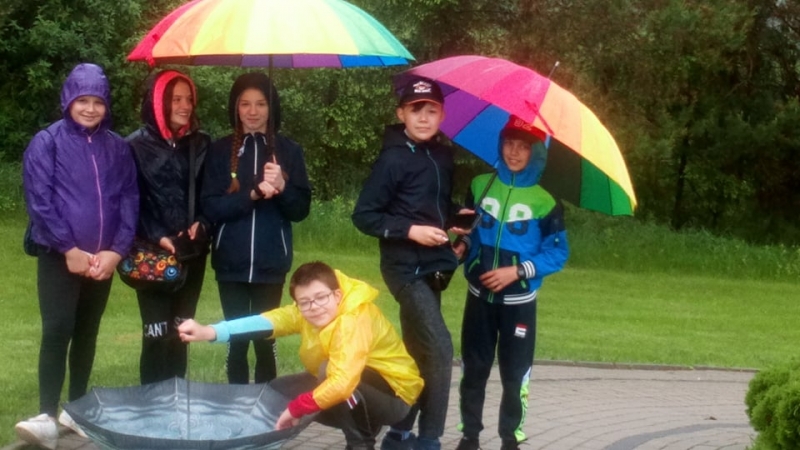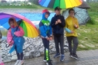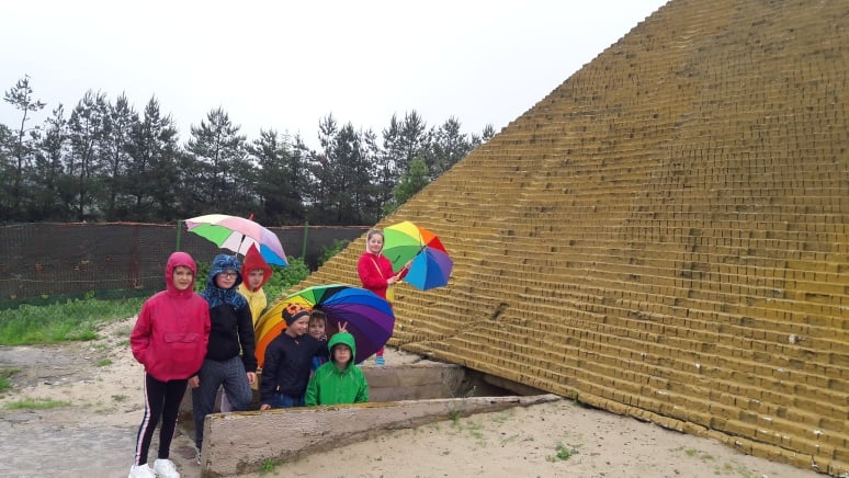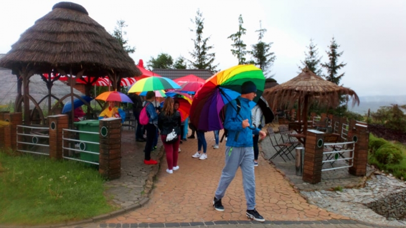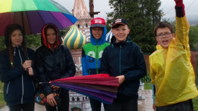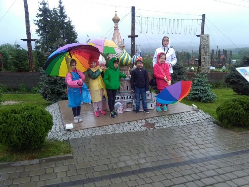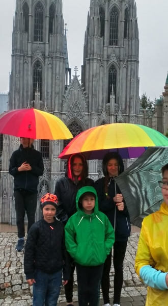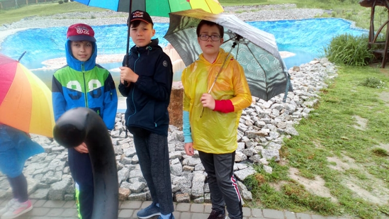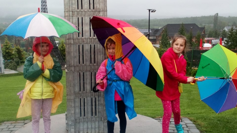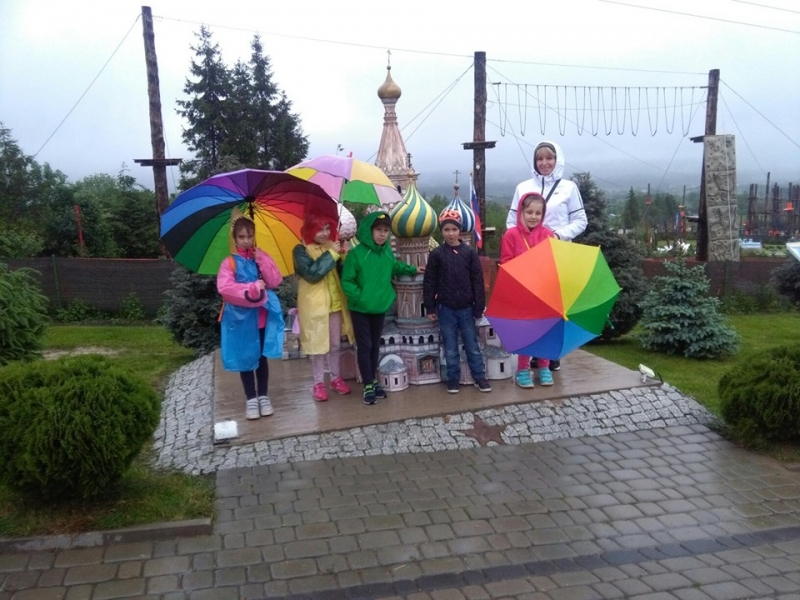 Pogoda tego dnia nas nie rozpieszczała, już w czasie jazdy rozpadało się. Kiedy przybyliśmy na miejsce , nadal padał deszcz. Chwilę czekaliśmy w autobusie, aby nie zmoknąć. Po kilku minutach wyszliśmy i ruszyliśmy w stronę Parku Miniatur. Dostaliśmy tam parasole i weszliśmy do parku. Widzieliśmy tam: Statuę Wolności, Wieżę Eiffla, Big Bena Katedrę Notre- Dame oraz wiele innych znanych i charakterystycznych budowli z całego świata. Było nam nieco przykro, że nie było żadnej miniaturowej budowli z Polski. Później wybraliśmy się do kina 6D. Obejrzeliśmy tam fascynujące seanse. Następnie poszliśmy na lekcję edukacyjną. Uzupełnialiśmy wierszyk oraz w prosty sposób wyznaczaliśmy kierunki. Po lekcji ponownie wróciliśmy do kina. Później pojechaliśmy do Kielc, aby zjeść ciepły posiłek. W restauracji każdy wybrał coś smacznego. Po nieco wydłużonym czasie spędzonym w zaciszu restauracyjnym wróciliśmy do Kraina. Poszliśmy do Lunaparku, gdzie czekało na nas sporo atrakcji. Skakaliśmy na trampolinach oraz jeździliśmy elektrycznymi samochodzikami. Po kilku godzinach świetnej zabawy dotarliśmy do autobusu i wyruszyliśmy w drogę powrotną do Zrębina. Spod szkoły odebrali nas rodzice.