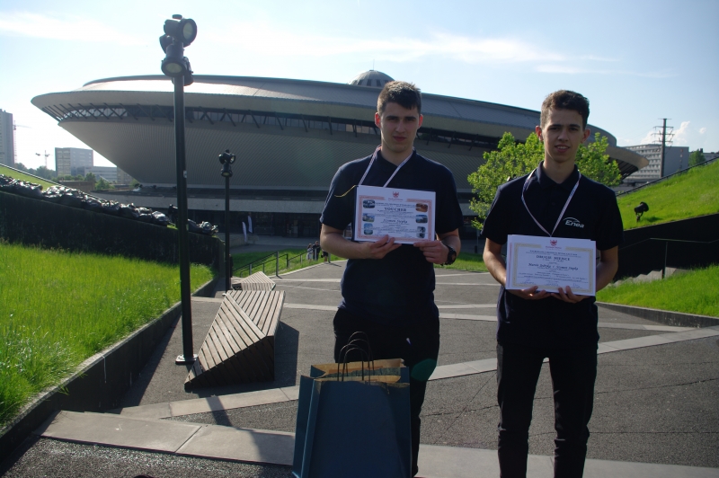 06 czerwca 2019 w siedzibie Naczelnej Organizacji Technicznej NOT Szymek i Marcin, odbierają nagrody w Olimpiadzie Innowacji Technicznych 2019 – tutuły finalistów szczebla centralnego, wstęp na studia i 100% z części teoretycznej egzaminu potwierdzającego kwalifikacje zawodowe.