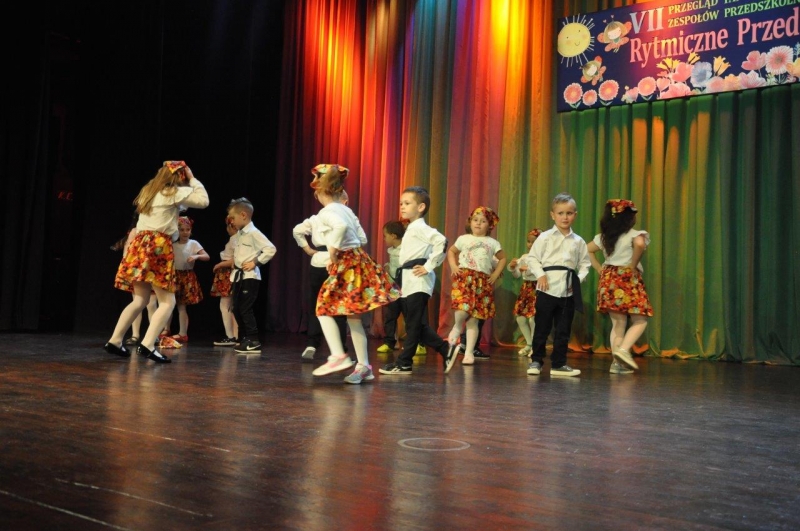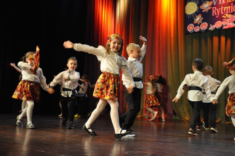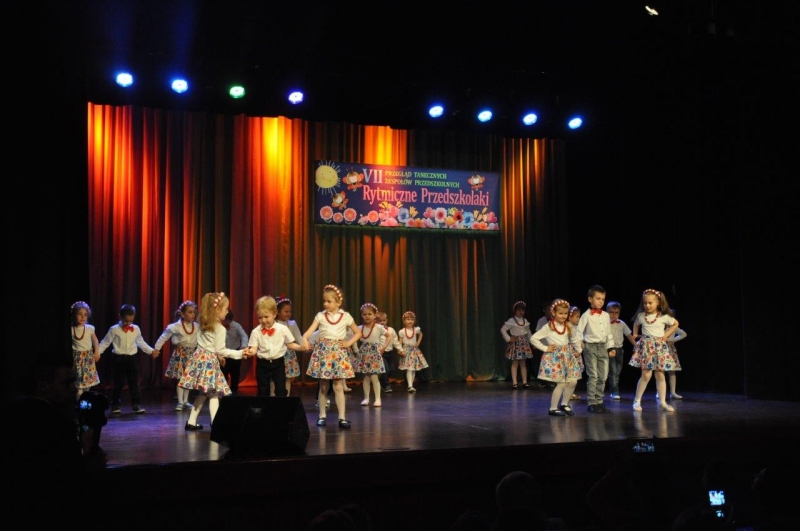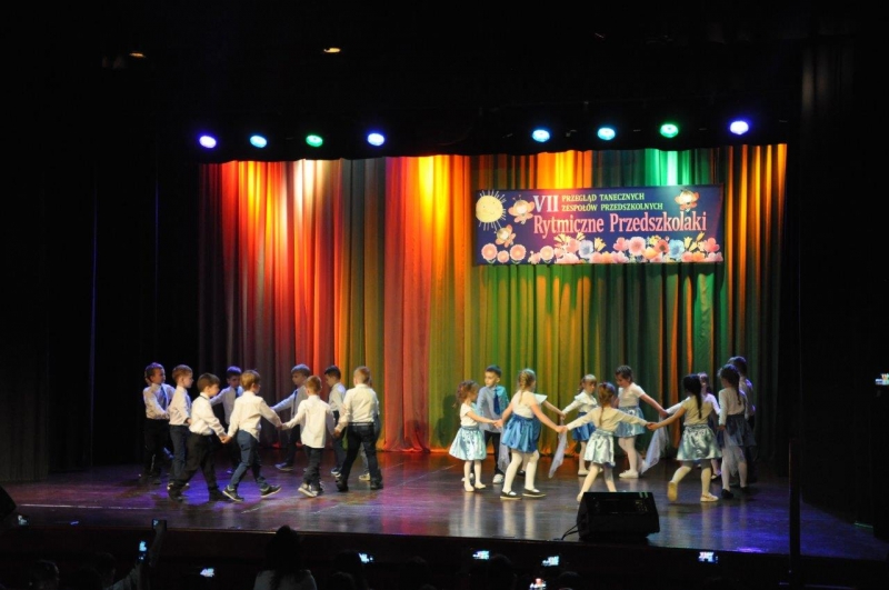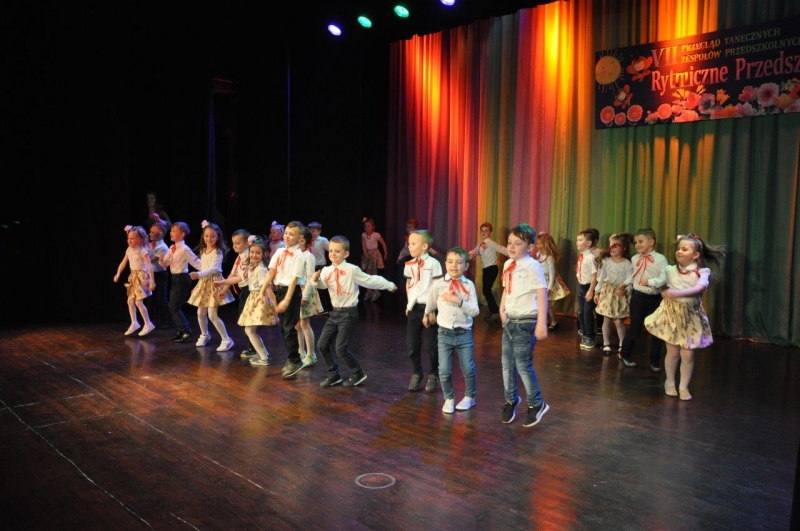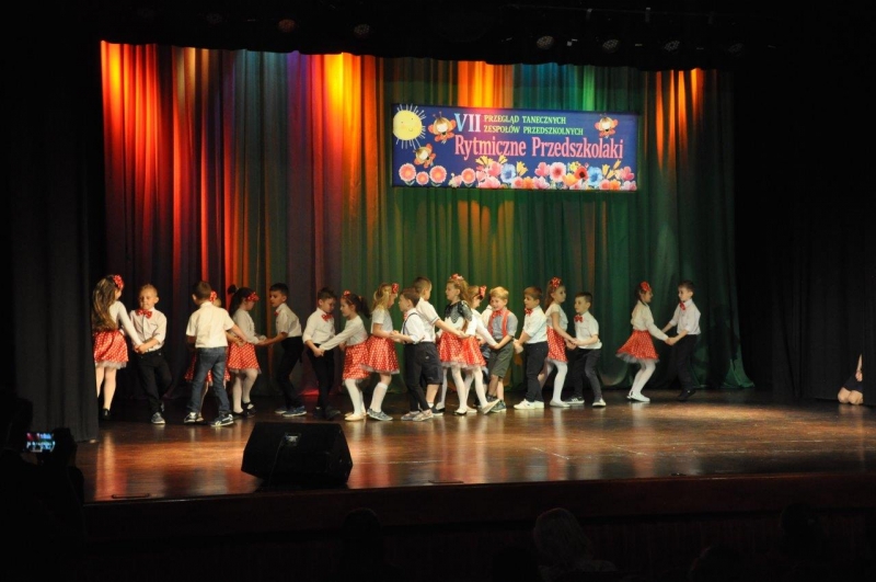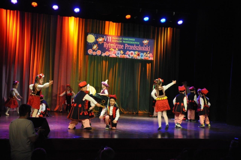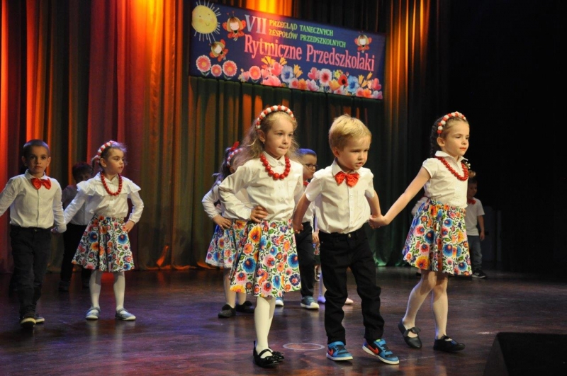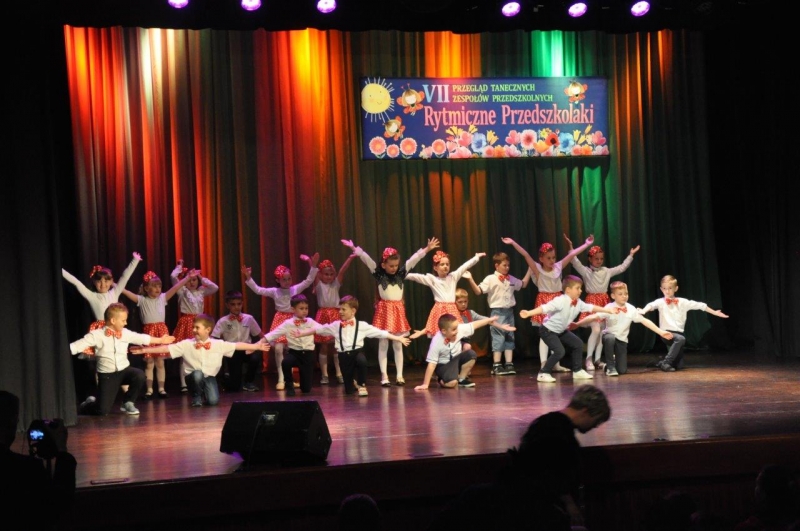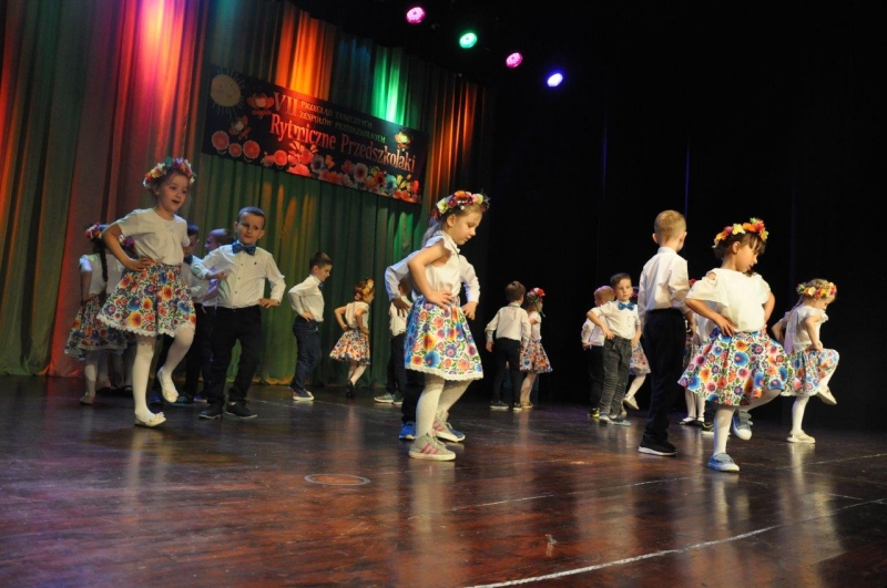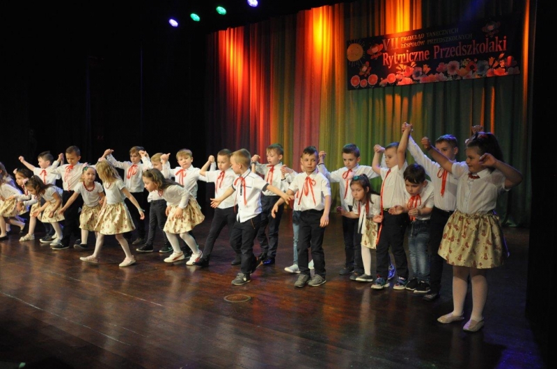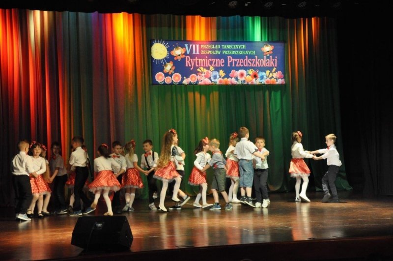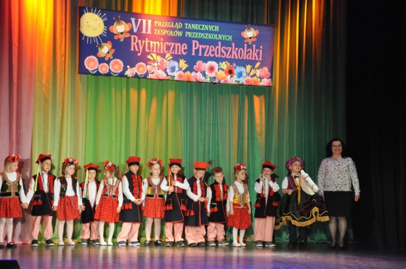 Taniec odgrywa ważną rolę w życiu dziecka – kształtuje poczucie rytmu, uwrażliwia na muzykę, wpływa na wszechstronny rozwój osobowości, rozwija uczucia i wyobraźnię, ale przede wszystkim dostarcza dużo radości i piękna. Przekonaliśmy się o tym w dniu 30 maja 2019r. podczas VII Przeglądu Tanecznych Zespołów Przedszkolnych „Rytmiczne Przedszkolaki", którego organizatorem było Przedszkole Publiczne w Połańcu i Centrum Kultury i Sztuki w Połańcu. Tegoroczne spotkanie młodych tancerzy miało charakter patriotyczny a poświęcone było 100 –rocznicy odzyskania niepodległości przez Polskę. By w sposób szczególny uczcić tą wyjątkową rocznicę dzieci z przedszkoli z Oleśnicy, Ruszczy i Połańca zaprezentowały się w tańcach ludowych, regionalnych oraz narodowych. To wielkie muzyczne wydarzenie odbyło się w atmosferze niezwykle widowiskowych klimatów artystycznych. Ponad 200 dzieci 4,5 i 6-letnich wzięło udział w tym wyjątkowym wydarzeniu. Mieliśmy okazję podziwiać bardzo pomysłowe i różnorodne układy choreograficzne, barwne kostiumy na tle pięknej, polskiej muzyki. Głównym założeniem przeglądu była integracja środowisk przedszkolnych, rozwijanie uzdolnień tanecznych dzieci oraz wzbogacenie o nowe doświadczenia podczas występów publicznych.