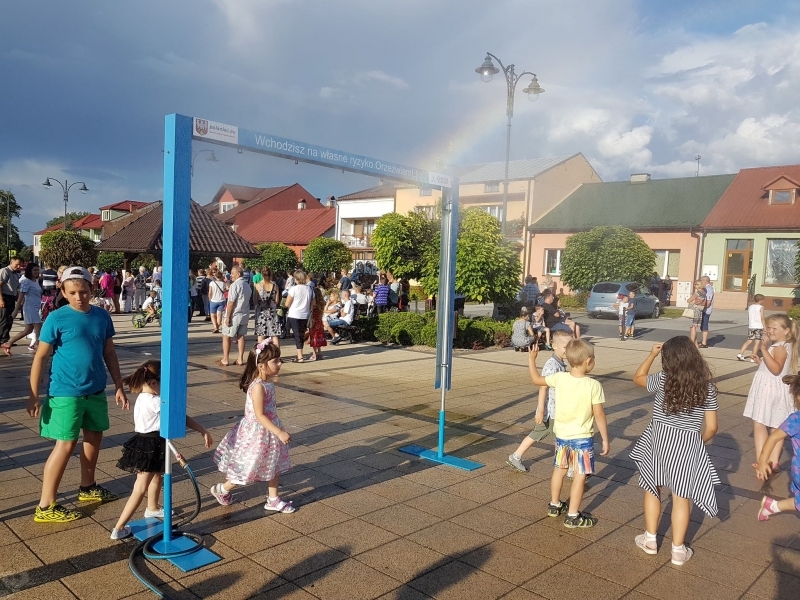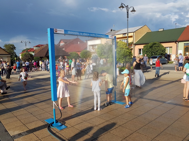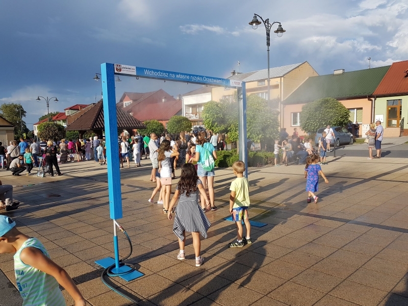 W Połańcu na rynku stanęła kurtyna wodna, która zachęca do orzeźwienia w upalne dni zarówno dzieci jak i dorosłych.