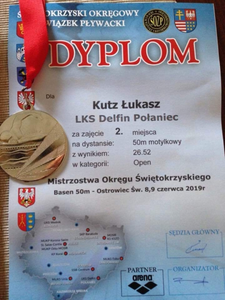 - na dystansie 50 m stylem motylkowym z czasem 26.52 przegrywając tytuł mistrza tylko o 0.02