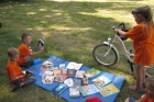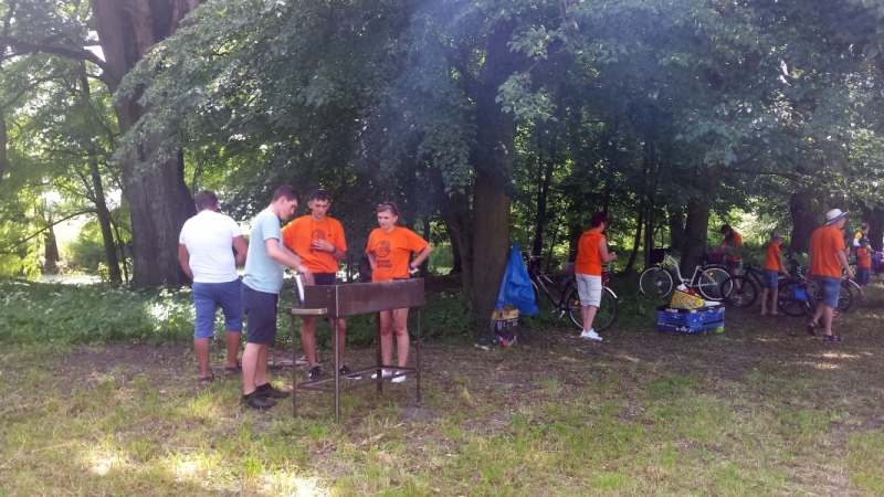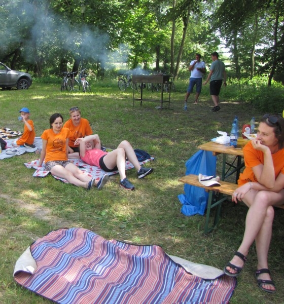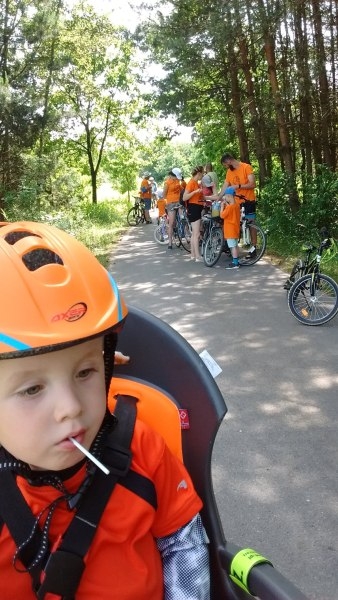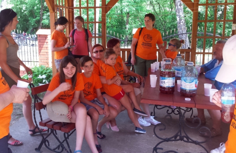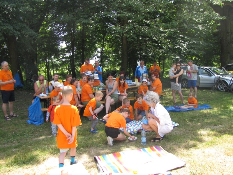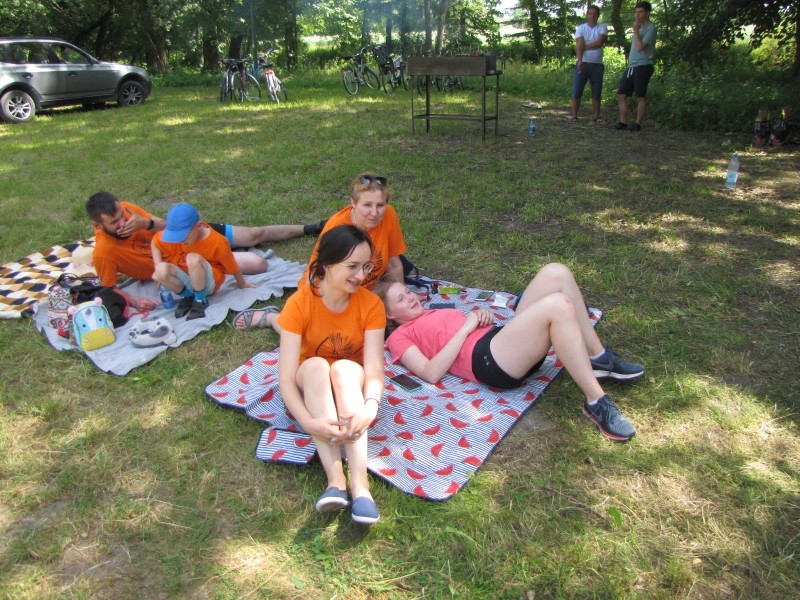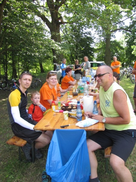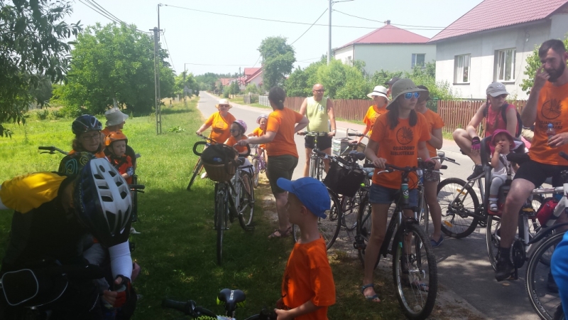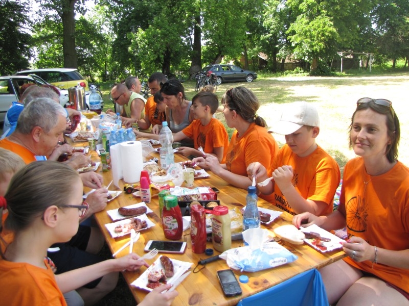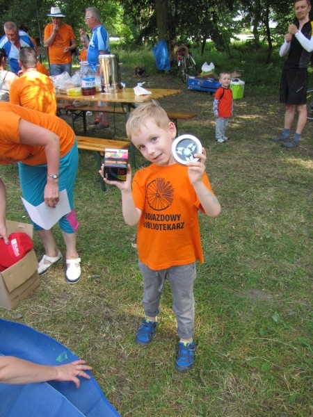 A na koniec jeszcze pozostały podziękowania. Chcemy serdecznie podziękować wszystkim, którzy przyczynili się do organizacji „Odjazdowego Bibliotekarza”. Na początku pragniemy podziękować współorganizatorom: Miastu i Gminie Połaniec oraz Kołu PTTK w Połańcu. Gorące podziękowania należą się partnerom i darczyńcom naszej inicjatywy: Bankowi Spółdzielczemu w Połańcu, Gospodarstwu Ogrodniczemu Podsiadło Michał z Beszowej, Stacji Paliw Huzar w Połańcu, Firmie Handlowo-Usługowej Radcar w Połańcu, Tomcar części i akcesoria samochodowe z Połańca, Masarni Kazimierz Zaliński oraz Stowarzyszeniu Bibliotekarzy Polskich, których wsparcie pozwoliło nam uatrakcyjnić rajd i zapewnić jego uczestnikom poczęstunek oraz doskonałą zabawę. Dziękujemy także Gospodarstwu Agroturystycznemu Jadwiga Paruch z Grabowej, które przyjęło rowerzystów na chwilę odpoczynku i Ochotniczej Straży Pożarnej z Ruszczy za nieocenioną pomoc przy organizacji pikniku w Ruszczy. Na koniec dziękujemy Wam drodzy uczestnicy za wspólnie spędzony czas. Gratulacje dla najmłodszych kolarzy, którzy pierwszy raz samodzielnie odważyli się wybrać na rajd o własnych siłach. Pedałowaliście dzielnie. Także maluchy wiezione przez rodziców w fotelikach mimo gorąca dały radę. Cieszymy się, że mamy oddanych przyjaciół biblioteki i miłośników rowerowych wypraw.