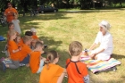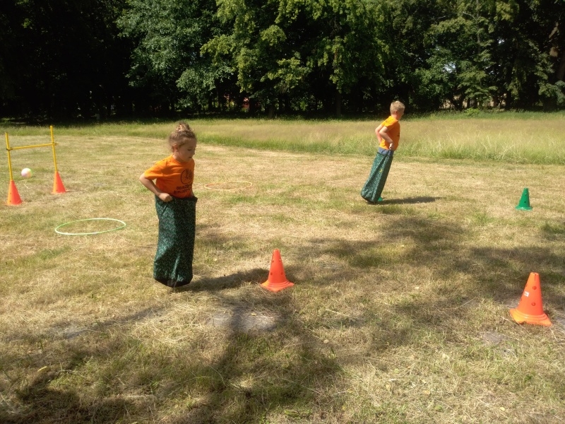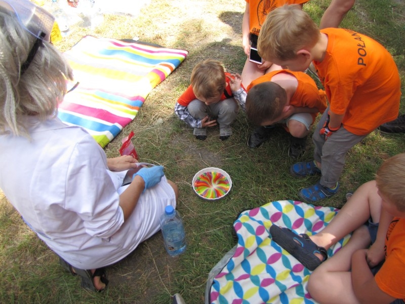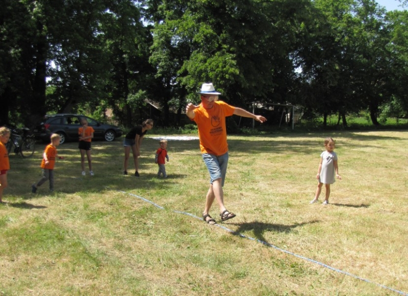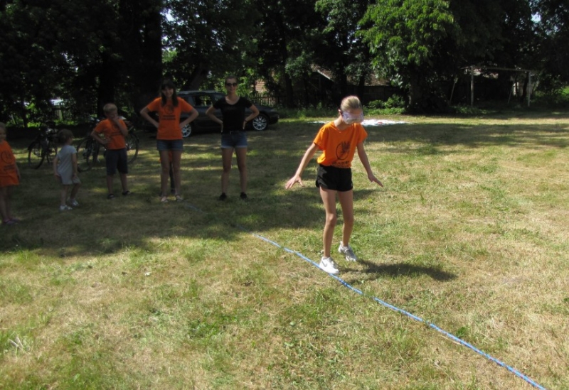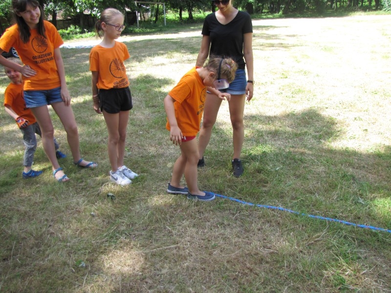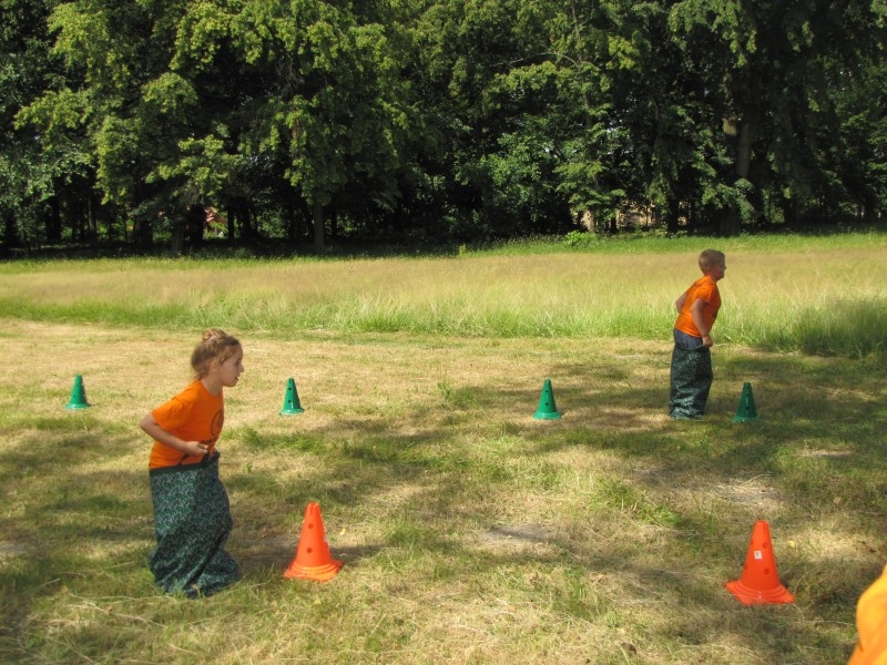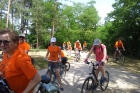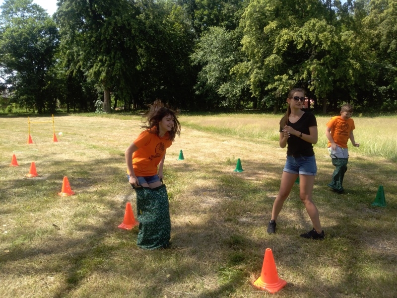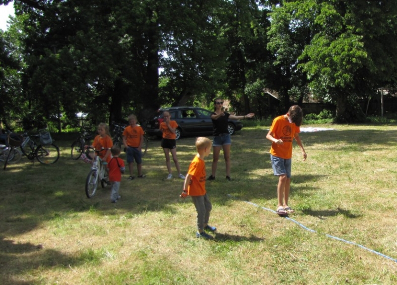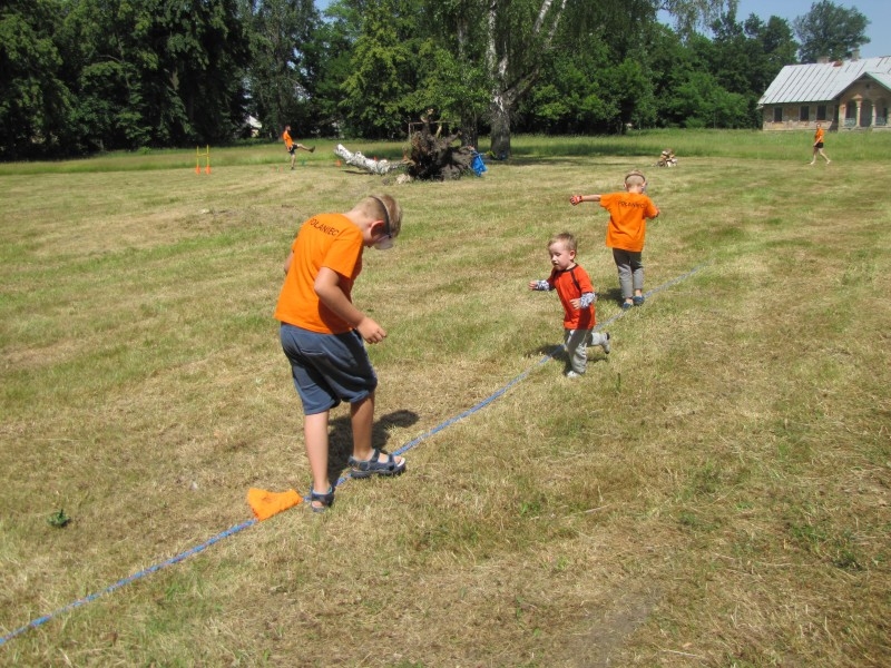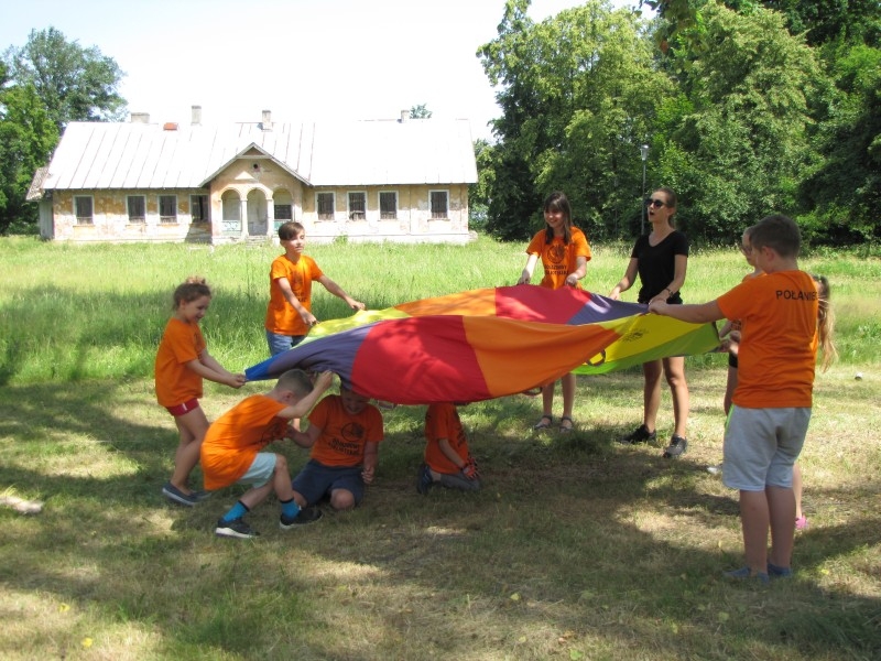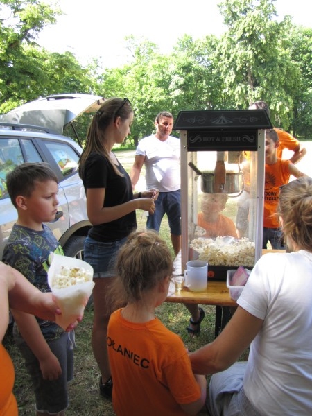 Jak co roku, już od siedmiu lat, w niedzielne przedpołudnie (16 czerwca) na parkingu obok biblioteki spotkali się bibliotekarze, członkowie PTTK oraz miłośnicy książek i wypraw na dwóch kółkach w każdym wieku, którzy zechcieli aktywnie spędzić dzień na powietrzu. Po krótkim powitaniu zgromadzonych, rozdaniu koszulek oraz przybliżeniu zasad bezpiecznej jazdy przez organizatorów, „odjazdowa drużyna” wyjechała na ulice miasta, przy okazji testując nowiutki odcinek ścieżki rowerowej wzdłuż ulicy Jana Pawła II. Tym razem trasa wycieczki prowadziła z Połańca do Ruszczy i z powrotem, a jej długość wyniosła około 30 kilometrów. Po przejechaniu rundy honorowej po Połańcu peleton w pomarańczowych koszulkach opuścił miasto. Dalsza trasa wiodła bocznymi drogami a także w większości przez las, dzięki czemu nie odczuwaliśmy aż tak gorąca. Pierwszy przystanek zrobiliśmy we wsi Grabowa. To tu skorzystaliśmy z gościnności naszej czytelniczki pani Jadwigi Paruch, która prowadzi Gospodarstwo Agroturystyczne w budynku po starej szkole. Przepiękny różany ogród w zaciszu lasu, raj dla motyli, był idealnym miejscem na odpoczynek. Popijając orzeźwiający owocowy kompot podziwialiśmy także cudne szydełkowe rękodzieła gospodyni. Zrelaksowani i pełni nowej energii wyruszyliśmy w dalsza drogę. Naszym miejscem docelowym, a zarazem drugim przystankiem w drodze powrotnej do Połańca, był park przy dworku w Ruszczy. Tutaj w cieniu pomnikowych drzew na głodnych rowerzystów czekały kiełbaski upieczone na grillu i przekąski. Było także coś do picia – na zimno i na gorąco. Na amatorów żywego ognia czekało drewno na ognisko, jednak nikt w taki upał nie odważył się go rozpalić. Można było także rozłożyć kocyki i uciąć sobie drzemkę. Po krótkim odpoczynku i wzmocnieniu się wszyscy, zarówno ci mali, jak i nieco starsi, zostali zaproszeni do szalonej zabawy z grupą animatorów Hokus Pokus z Buska-Zdroju. Na początek wystąpił jeszcze bardziej szalony profesorek z kilkoma niezwykłymi eksperymentami naukowymi. Dzieci robiły tęczę z kolorowych cukierków, oglądały wybuchy gejzerów i wulkanów w miniaturze oraz dowiedziały się jak zrobić pastę do zębów dla słonia. Były także zabawy z chustą Klanzy, wyścig w workach i przeciąganie liny. Można było spróbować swoich sił i przejść po linie w okularach zniekształcających rzeczywistość. Nie było to wcale łatwe. Ale to nie koniec atrakcji. W cieniu rozłożona została gigantyczna mata do twistera, która szybko znalazła amatorów wygibasów. Najmłodsi mieli swój kącik z zabawkami. Było też stanowisko do malowania tatuaży. Niecodzienną niespodziankę stanowił amerykański retro popcorn (świeżo prażony na miejscu). Bibliotekarski rajd rowerowy nie mógłby się odbyć bez książek. Dużym powodzeniem, zwłaszcza wśród małych czytelników, cieszyło się książkobranie, czyli rajdowy bookcrossing. Wiele książek znalazło swoich nowych właścicieli.