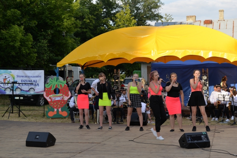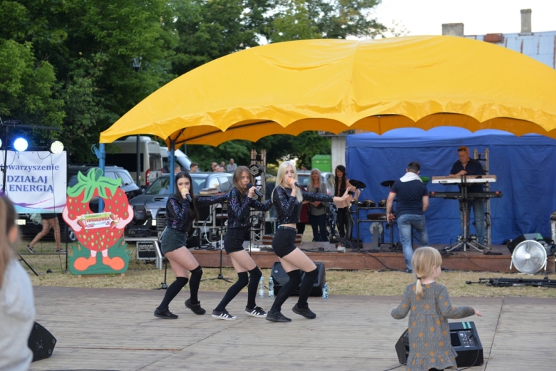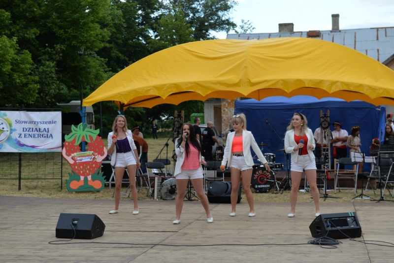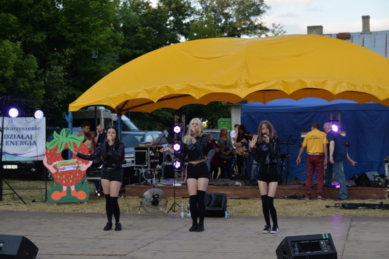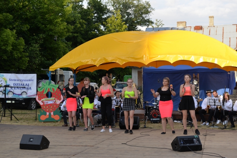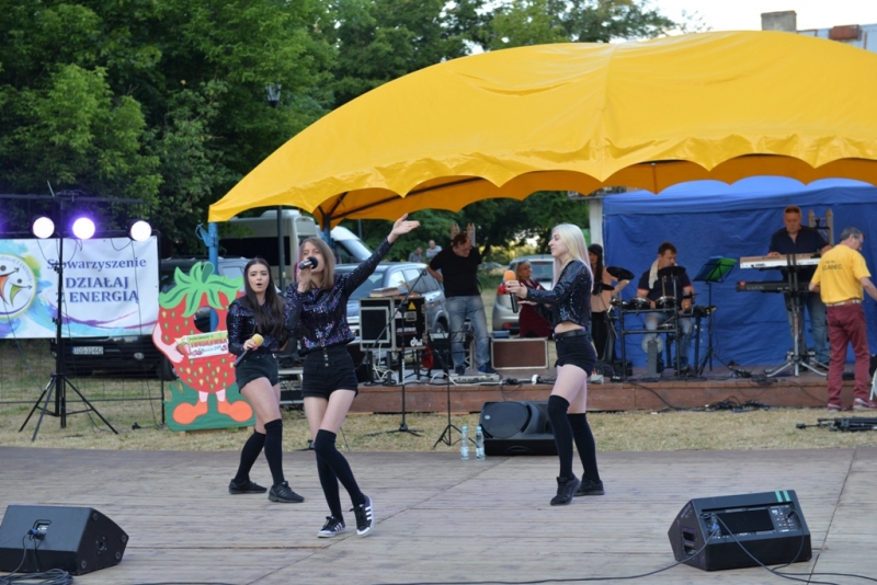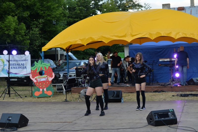 Część artystyczną rozpoczęły zespoły Digress I i II energetycznym pokazem tanecznym. Żartobliwie, na wesoło zaprezentowały się zespoły wokalne: Sidus, Radius, Wajpak z Centrum Kultury i Sztuki w Połańcu. Z niezwykłym wdziękiem i zaangażowaniem; tańcząc i śpiewając zaprezentowały szeroki wachlarz muzycznych możliwości. Były popowe przeboje i cygańskie pieśni. Do tańca zagrzewały biesiadne i folkowe piosenki. Na ludowo, ze wsparciem wokalnym zagrała Kapela „Niecka Połaniecka”. A gdy na parkiecie pojawiły się pierwsze, tańczące pary, zabawa ruszyła na całego. Wszystkie występy artystyczne zaostrzyły apetyt na długo wyczekiwaną „Potańcówkę na dechach”, o której realizację zadbało w ramach projektu Stowarzyszenie „DZIAŁAJ Z ENERGIĄ”. Muzyczno – taneczny wieczór ze świętokrzyskim zespołem SZAROTKA zakończył się późno w nocy. To było udane zakończenie sezonu truskawkowego.