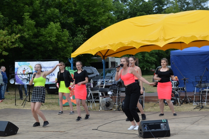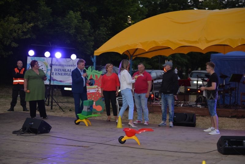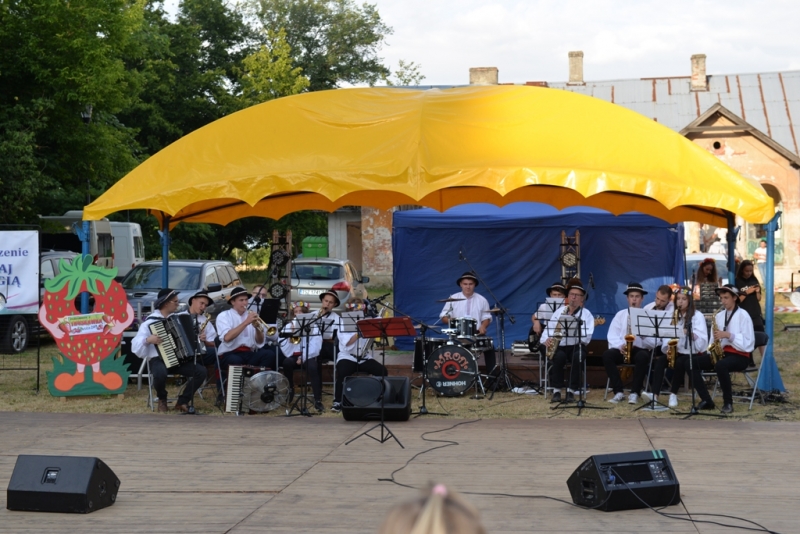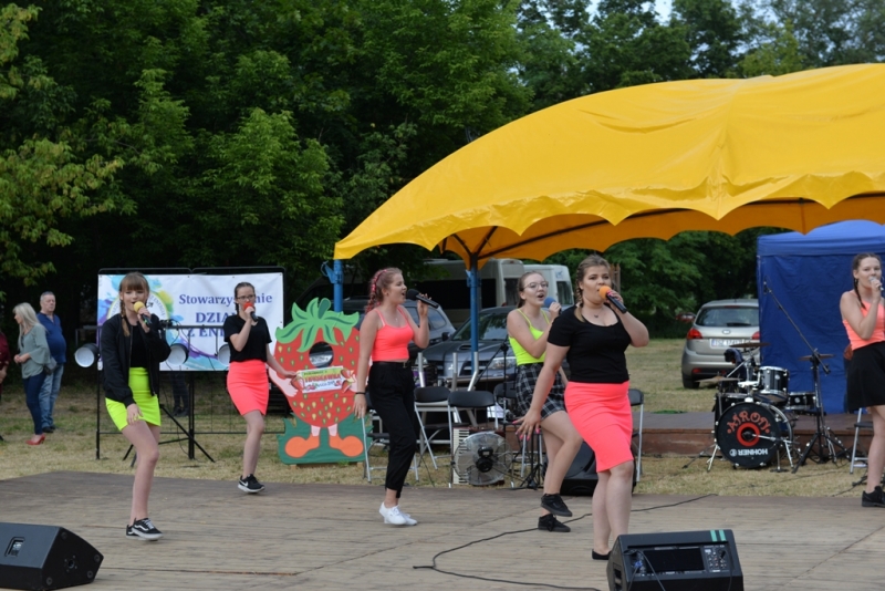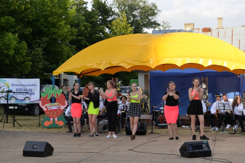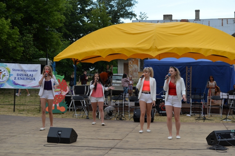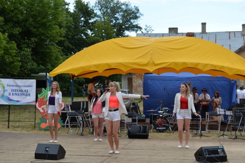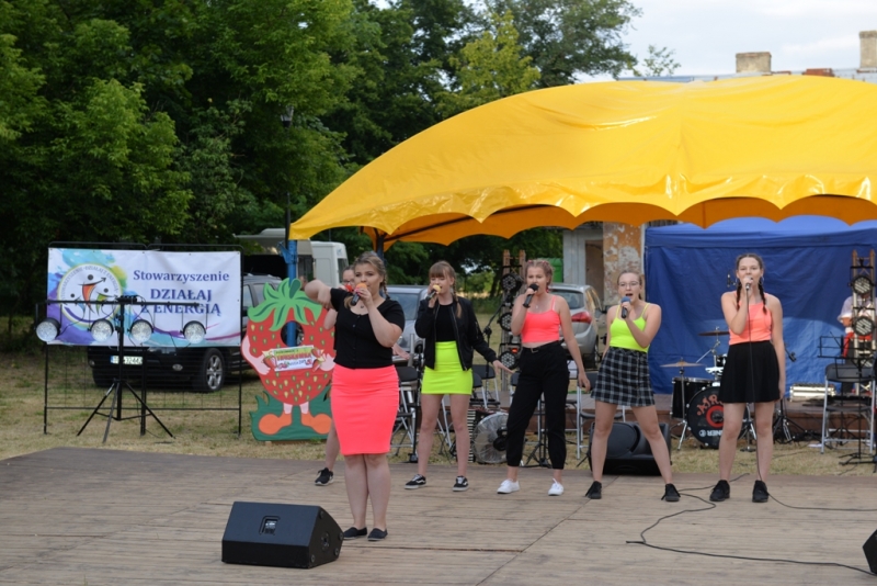 Część artystyczną rozpoczęły zespoły Digress I i II energetycznym pokazem tanecznym. Żartobliwie, na wesoło zaprezentowały się zespoły wokalne: Sidus, Radius, Wajpak z Centrum Kultury i Sztuki w Połańcu. Z niezwykłym wdziękiem i zaangażowaniem; tańcząc i śpiewając zaprezentowały szeroki wachlarz muzycznych możliwości. Były popowe przeboje i cygańskie pieśni. Do tańca zagrzewały biesiadne i folkowe piosenki. Na ludowo, ze wsparciem wokalnym zagrała Kapela „Niecka Połaniecka”. A gdy na parkiecie pojawiły się pierwsze, tańczące pary, zabawa ruszyła na całego. Wszystkie występy artystyczne zaostrzyły apetyt na długo wyczekiwaną „Potańcówkę na dechach”, o której realizację zadbało w ramach projektu Stowarzyszenie „DZIAŁAJ Z ENERGIĄ”. Muzyczno – taneczny wieczór ze świętokrzyskim zespołem SZAROTKA zakończył się późno w nocy. To było udane zakończenie sezonu truskawkowego.