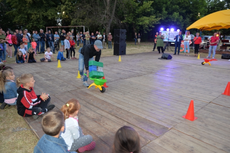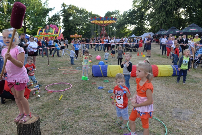 Wśród niedzielnych atrakcji nie zabrakło propozycji dla najmłodszych. Na wszystkie maluchy czekał kącik malowania twarzy i tatuaże oraz baseniki do połowu rybek. Przyciągały wesołe gry i konkurencje sprawnościowe. Było dużo śmiechu i znakomitej zabawy, a na zakończenie upominki i nagrody wręczył Burmistrz Miasta i Gminy Połaniec Jacek Tarnowski i Dyrektor Centrum Kultury i Sztuki w Połańcu Joanna Juszczyńska. Poza konkursami dla dzieci odbyły się również konkurencje „mieszkańcy kontra mieszkańcy”. Uczestnicy wykazali się nie lada sprytem i pomysłowością karmiąc i będąc karmionym jogurtem truskawkowym czy szukając wśród publiczności przedmiotów na wybraną literę alfabetu. Panowie zdecydowanie wybrali męską rywalizację stając do „Wyścigu Farmera” z mini taczkami. Dobry humor i znakomita zabawa nie opuszczał uczestników i kibicującej im publiczności.