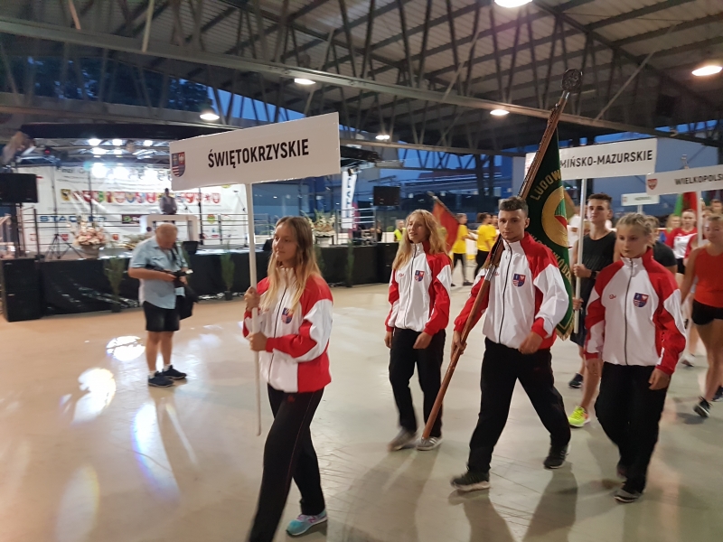 W oficjalnym otwarciu uczestniczyły delegacje wszystkich województw biorących udział w sportowych zmaganiach, Podczas uroczystego otwarcia igrzysk hymn państwowy odegrała orkiestra, zapłonął też znicz olimpijski. Pochodnię, którą został zapalony znicz niosła znakomita zapaśniczka WLKS-u Magdalena Kisielińska. Ogólnopolskie Igrzyska Zrzeszenia LZS w ubiegłym roku zostały wpisane do programu obchodów 100-lecia odzyskania niepodległości oraz 100-lecia Polskiego Komitetu Olimpijskiego. Dlatego też honorowy patronat objął nad nimi prezydent RP Andrzej Duda, a także minister energii Krzysztof Tchórzewski i marszałek województwa mazowieckiego Adam Struzik. Oficjalnego otwarcia imprezy dokonał poseł Władysław Kosiniak- Kamysz, który jest przewodniczącym Krajowego Zrzeszenia Ludowych Zespołów Sportowych. Wśród honorowych patronów igrzysk nie mogło zabraknąć Sponsora głównego Energa, oraz sponsora strategicznego Stadler. Igrzyska uzyskały również dofinansowanie z MSiT