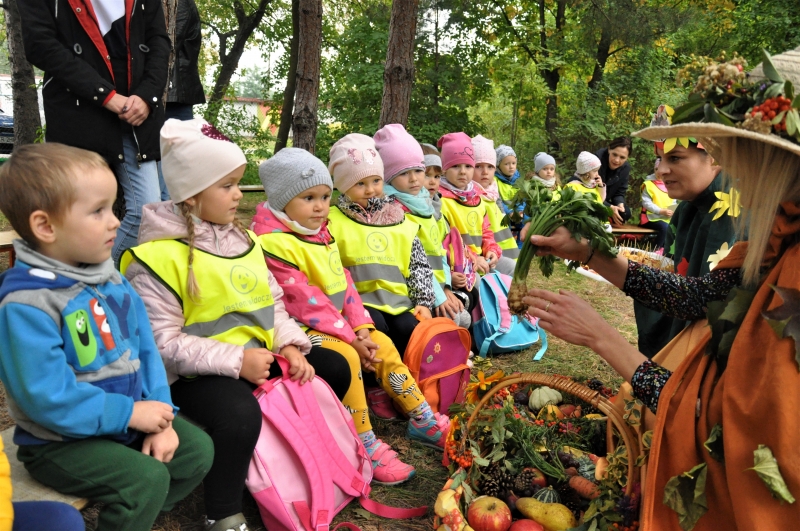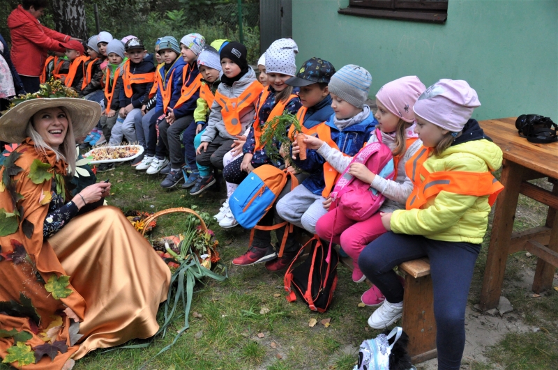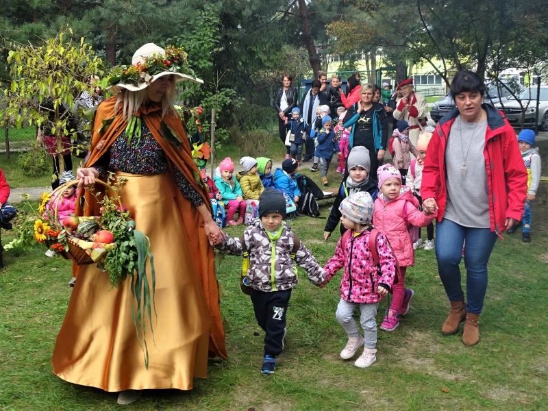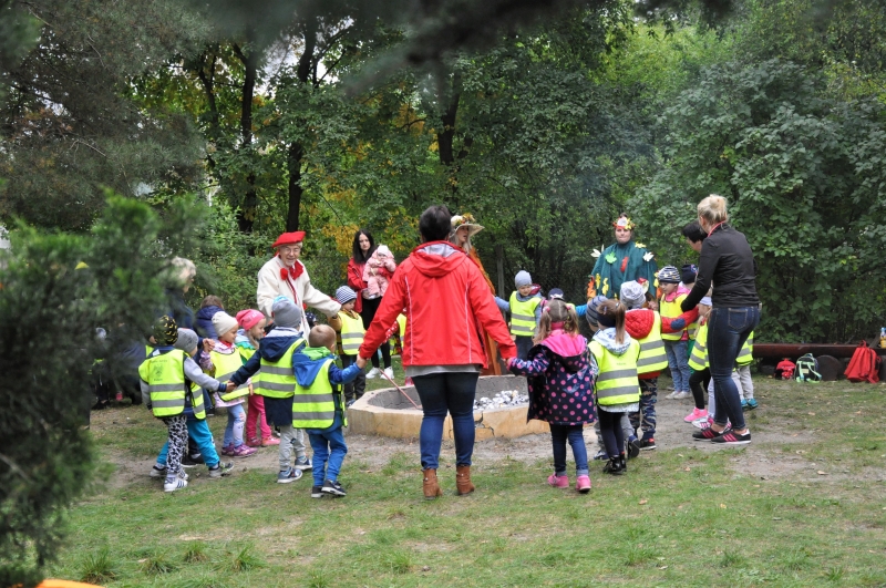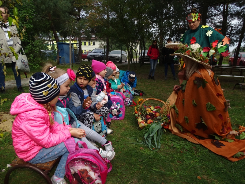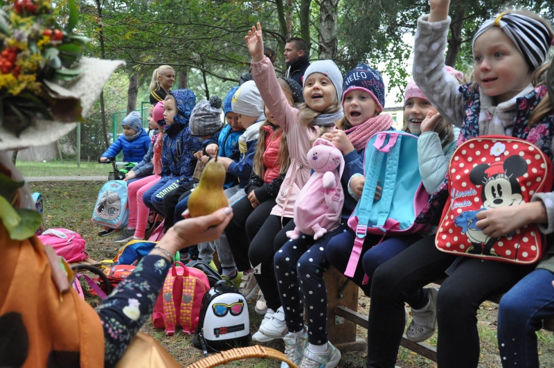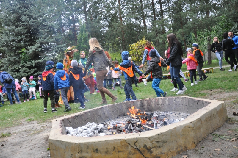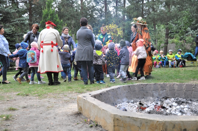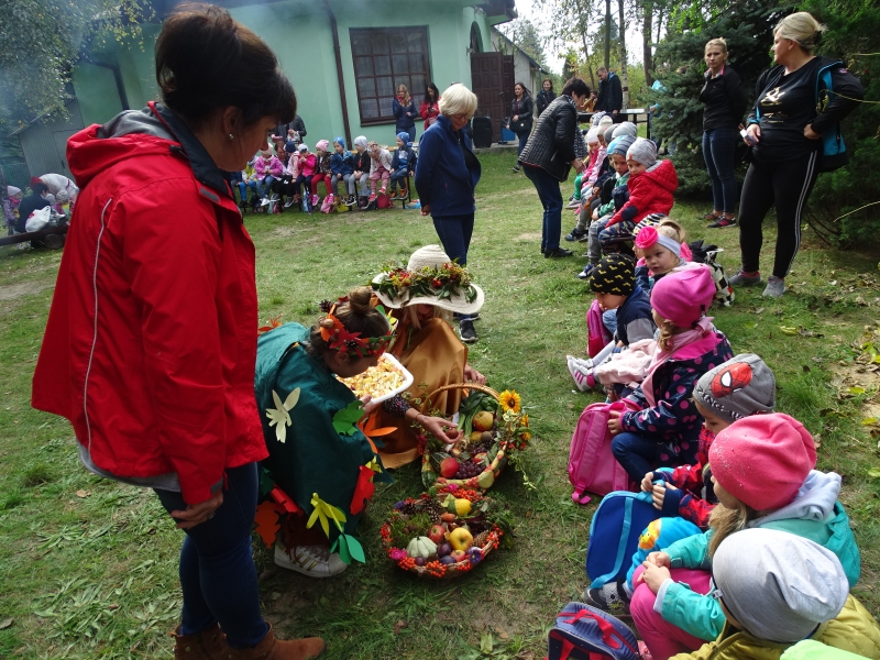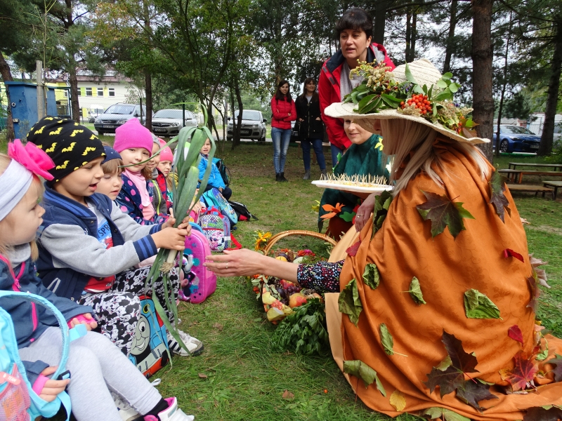 Takie hasło towarzyszyło wszystkim wychowankom z Przedszkola Publicznego w Połańcu podczas corocznej imprezy zorganizowanej 24 – 25 września 2019r. na działkach „Relaks”. Na wszystkie dzieci czekało tu wiele atrakcji min. ogromne ognisko, spotkanie z panią jesienią, spacer, wesołe zabawy… Przy unoszącym się w powietrzu zapachu pieczonych ziemniaków, czas umilały dzieciom przygotowane przez panią Jesień oraz jej pomocnika jeża zabawy, zagadki oraz degustacja zdrowych koreczków owocowych. Wiele radości sprawiły też dzieciom wędrówki po ogrodach działkowych, gdzie podziwiały przepiękne kwiaty, wspaniałe okazy warzyw i owoców, obserwowały jesienne prace polowe, poznały tradycje ludowe min. wykopki.