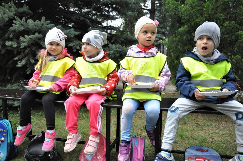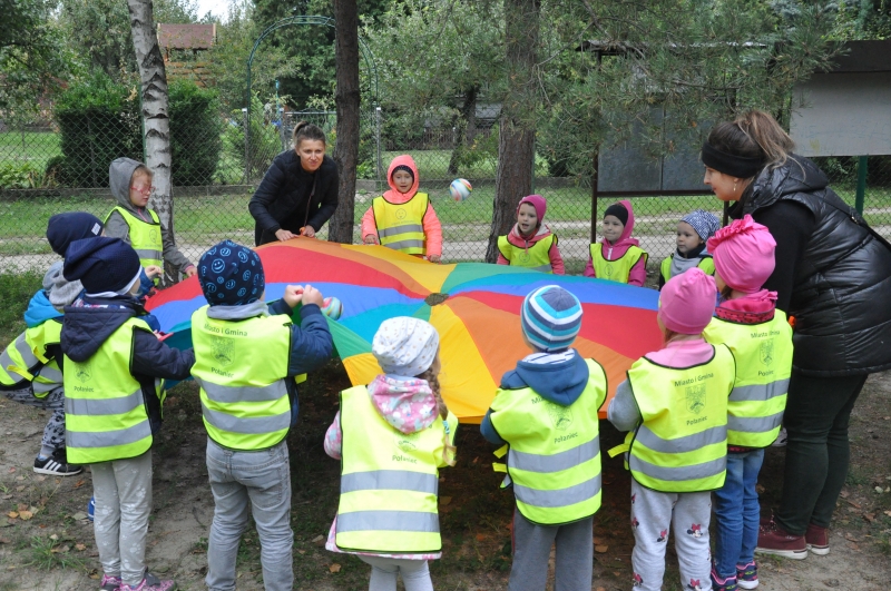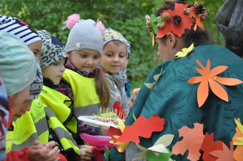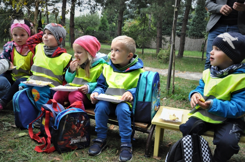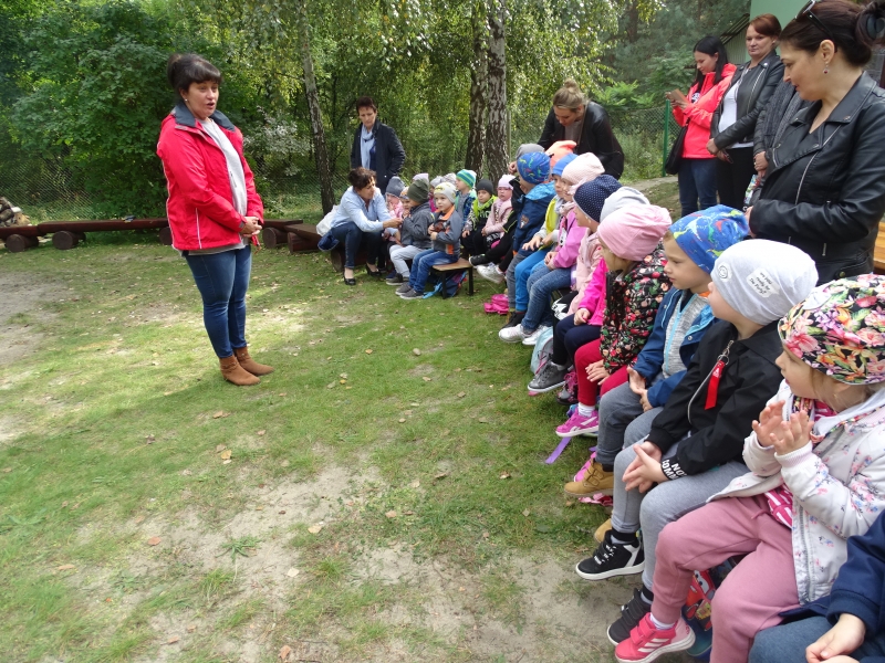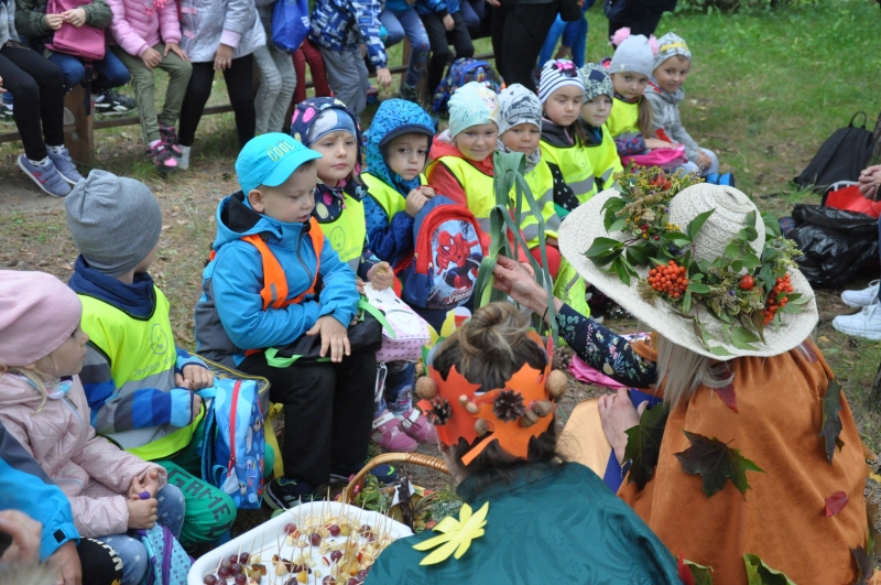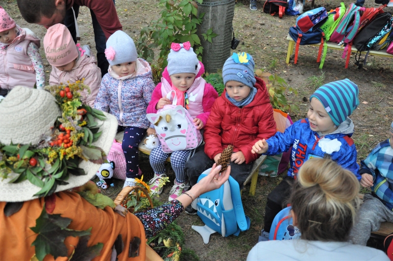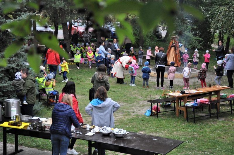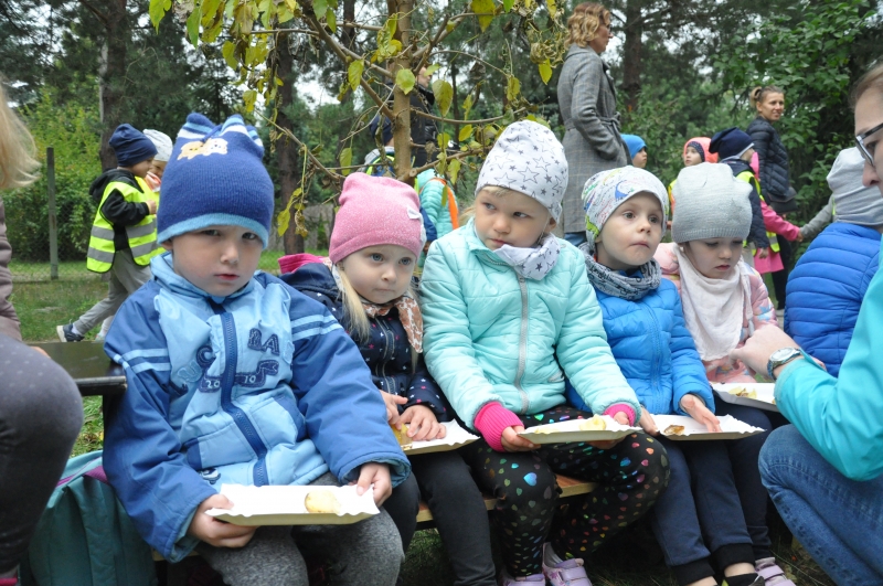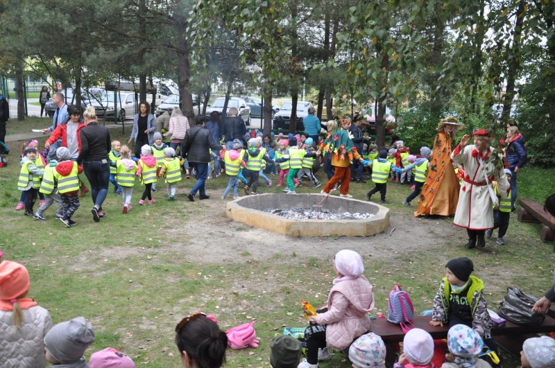 Takie hasło towarzyszyło wszystkim wychowankom z Przedszkola Publicznego w Połańcu podczas corocznej imprezy zorganizowanej 24 – 25 września 2019r. na działkach „Relaks”. Na wszystkie dzieci czekało tu wiele atrakcji min. ogromne ognisko, spotkanie z panią jesienią, spacer, wesołe zabawy… Przy unoszącym się w powietrzu zapachu pieczonych ziemniaków, czas umilały dzieciom przygotowane przez panią Jesień oraz jej pomocnika jeża zabawy, zagadki oraz degustacja zdrowych koreczków owocowych. Wiele radości sprawiły też dzieciom wędrówki po ogrodach działkowych, gdzie podziwiały przepiękne kwiaty, wspaniałe okazy warzyw i owoców, obserwowały jesienne prace polowe, poznały tradycje ludowe min. wykopki.