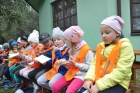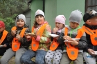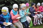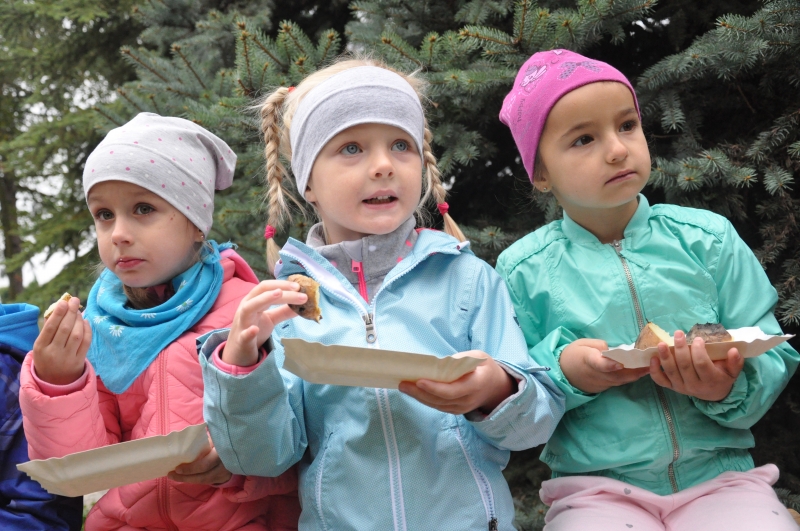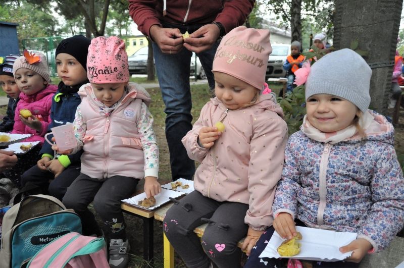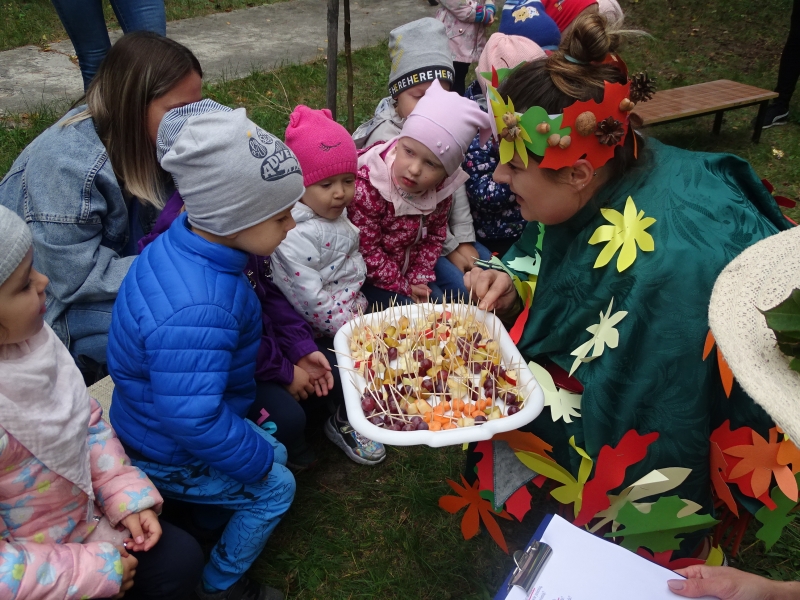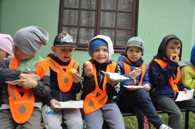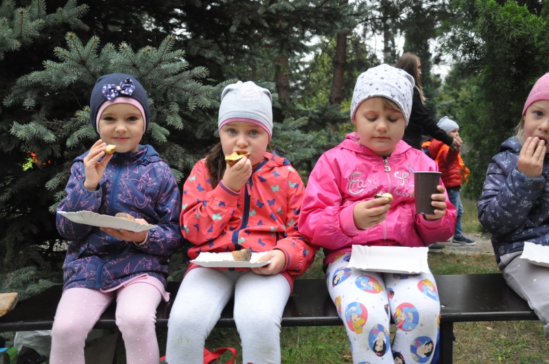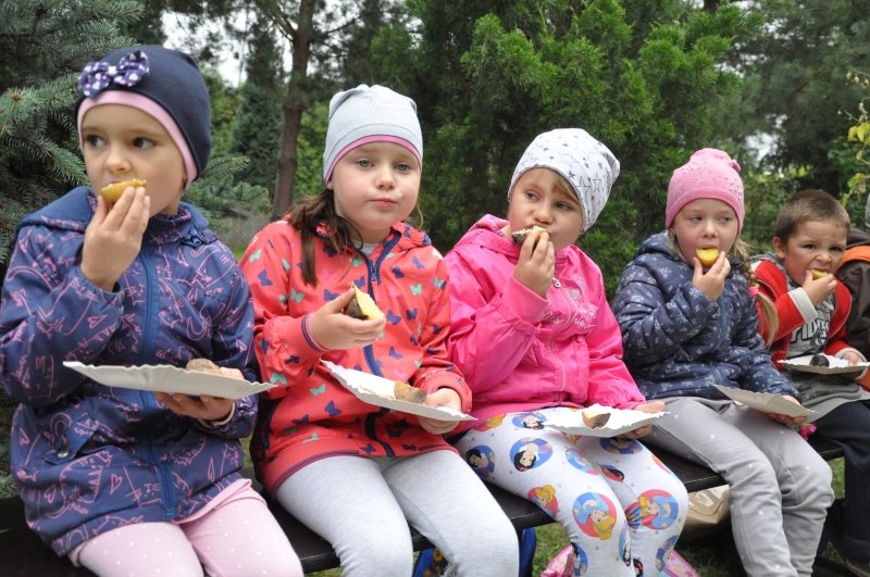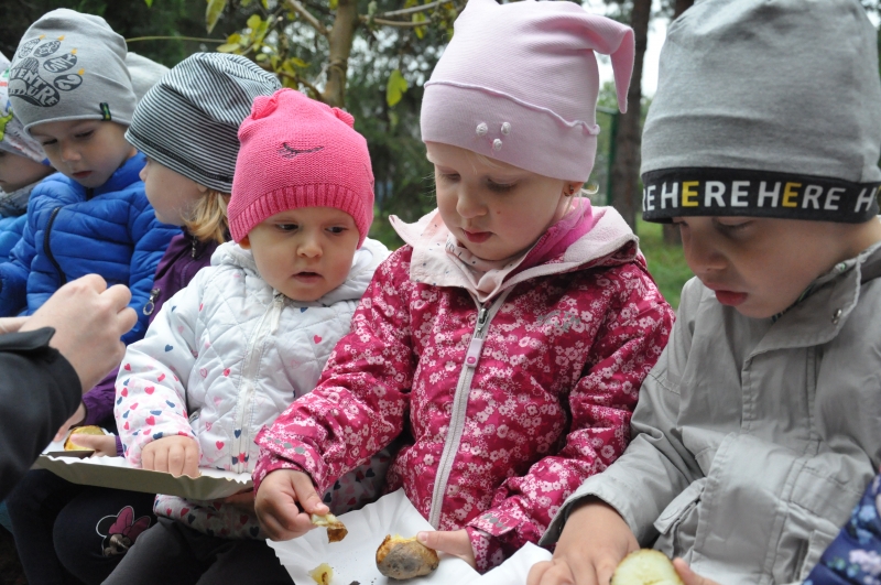 W oczekiwaniu na degustację pieczonych ziemniaków dzieci z twarzami pełnymi uśmiechu śpiewały piosenki, bawiły się wesoło z chustą animacyjną, z piłkami… Podczas imprezy nie zabrakło też wspólnych zabaw przy muzyce o tematyce jesiennej.