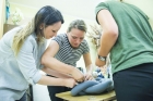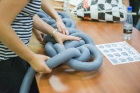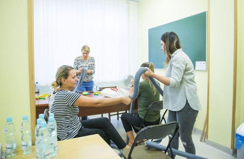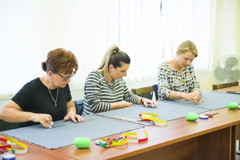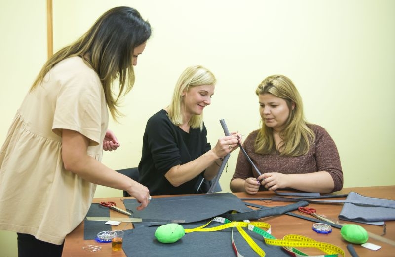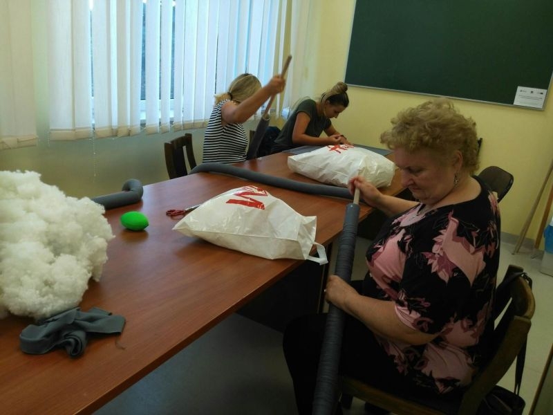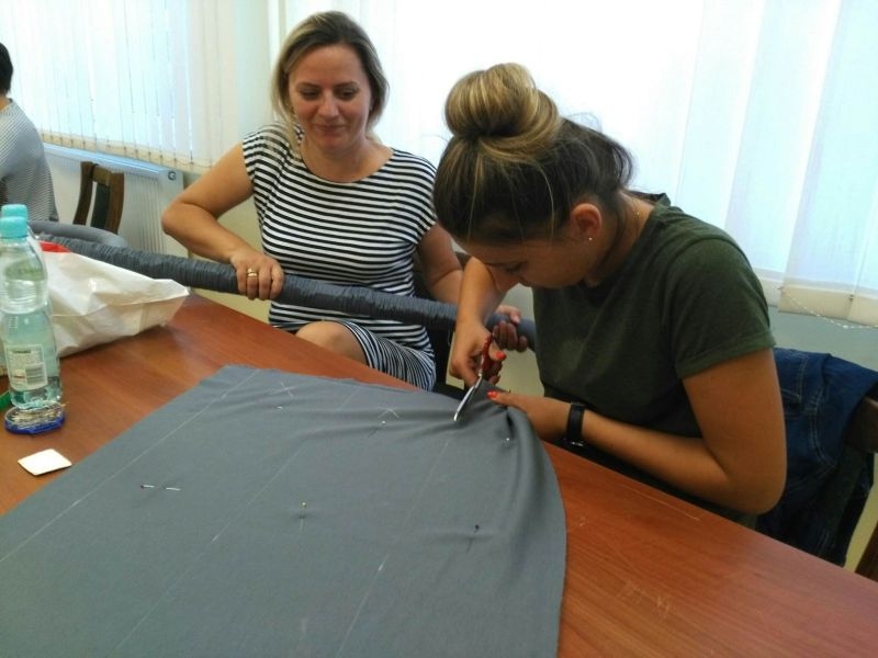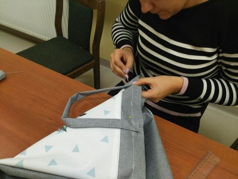 Rysowanie, krojenie, upinanie materiału okazało się dziecinnie proste nawet dla osób, które po raz pierwszy miały do czynienia z prawdziwym szyciem. Projekt „Tańcowała igła z nitką – kreatywne warsztaty krawieckie” to ciekawa, kulturalna inicjatywa, dzięki której po raz kolejny potwierdziło się stare, polskie przysłowie „Nie taki diabeł straszny jak go malują”. O sympatyczną atmosferę podczas szycia zadbała instruktor Ewa Kowalska. Cierpliwość z jaką pokazywała, tłumaczyła i wyjaśniała poszczególne elementy składania poduszki i torby zasługują na medal. Nic więc dziwnego, że nikogo nie zniechęcał do dalszej pracy krzywo przeszyty ścieg, złamana igła czy źle złożony materiał, bo wszystko dało się naprawić. Wykonane samodzielnie piękne, szare poduszki – supełki i super pojemne torby na zakupy nie tylko cieszyły oko, ale dały ogromną satysfakcję z dobrze wykonanej pracy. Przed Grupą KRAWCOWE.PL jeszcze dwa krawieckie spotkania w dniach 10 – 11 października. Tym razem do wykonania poduszki – cukierka i woreczka z grochem zapraszamy mamy z dziećmi.
