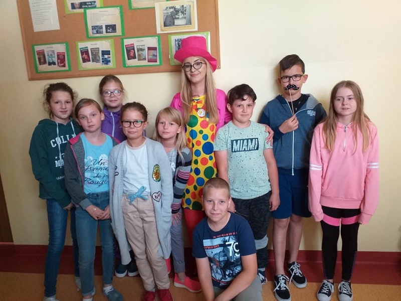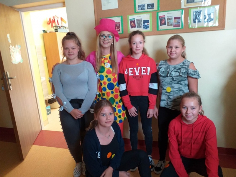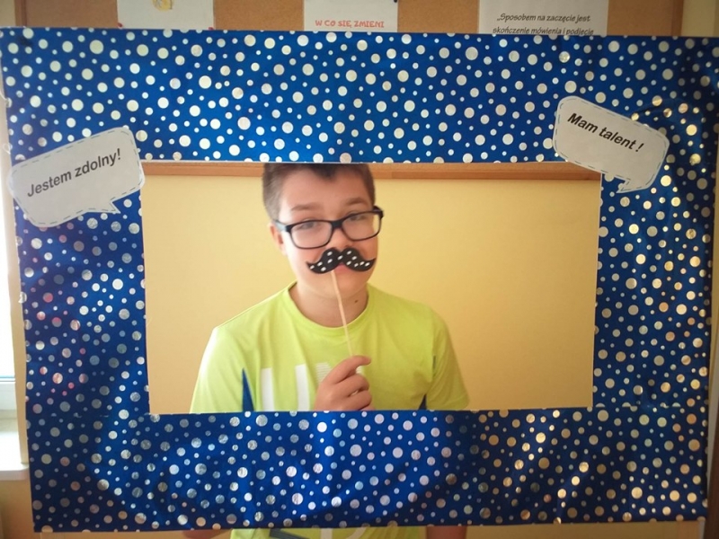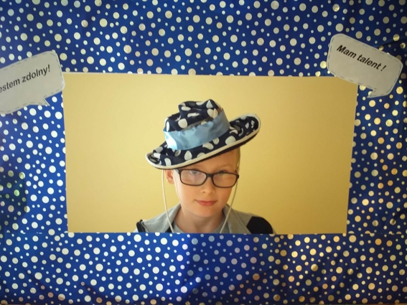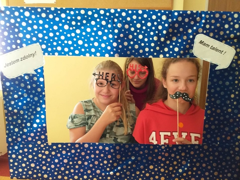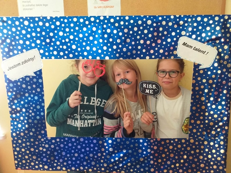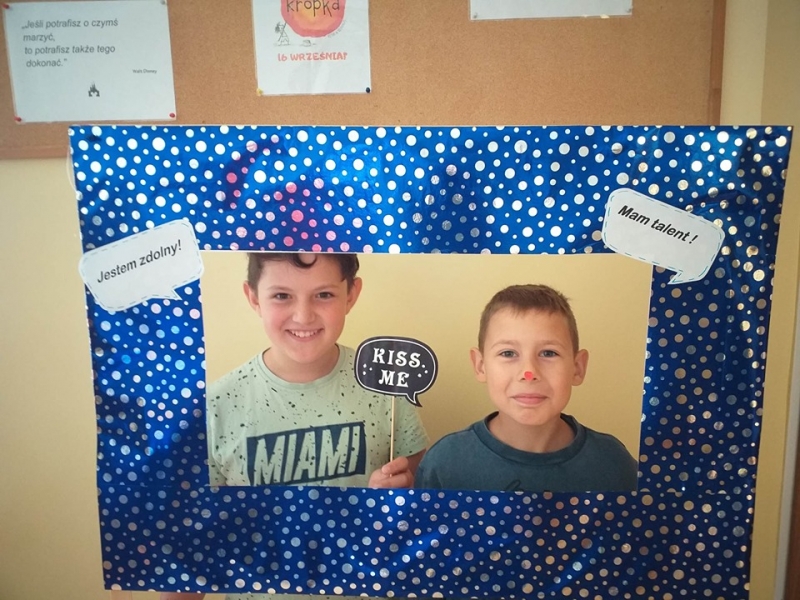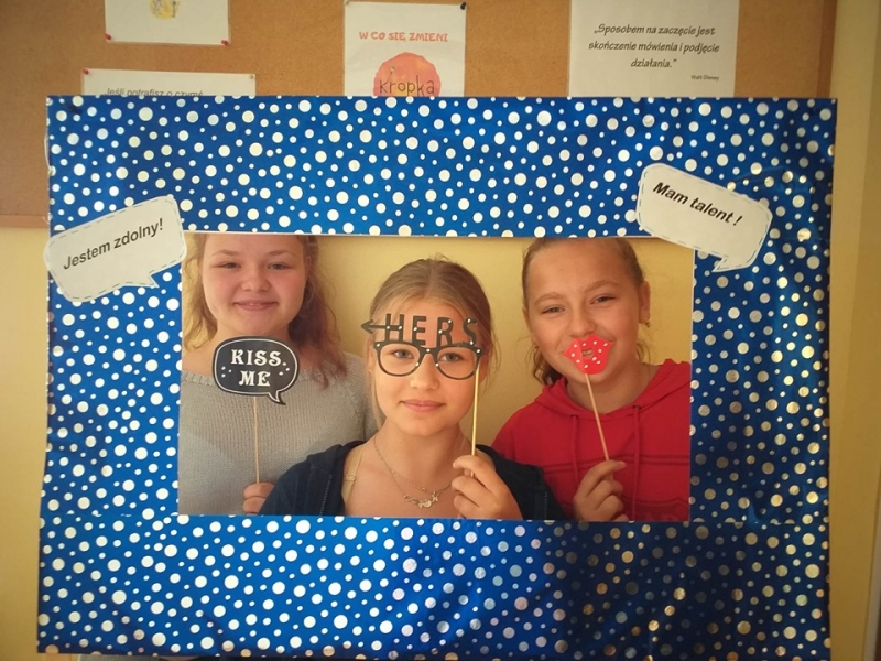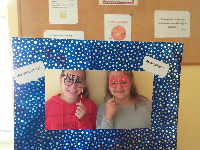 16 września2019 w naszej szkole świętowaliśmy dzień wiary we własne możliwości i kreatywności. Na początku przypomnieliśmy sobie historię małej Vashti, bohaterki z książki Petera H. Reynoldsa pt. „Kropka", która dzięki nauczycielce plastyki uwierzyła we własne możliwości. W naszej szkole też nie brak uczniów, którzy mają ukryte talenty, pasje i zainteresowania i wystarczy tylko trochę wiary w siebie, by pochwalić się nimi przed całym światem. Uczniowie klas 1-3 próbowali odkodować ukryte zdania i wspólnie z panią Agatą Brzdękiewicz zastanawiali się nad tym kto jaki ma talent. Natomiast w klasach 4 – 8 pani Justyna Janeczek przeprowadziła turniej klasowy z zadaniami z kropką w tle. Uczniowie chętnie robili sobie pamiątkowe zdjęcia, zarówno z „Panią Kropką" jak i korzystając z kropkowej foto budki.