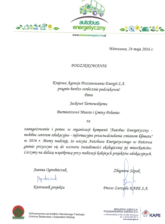 W dniu 31 maja 2016 r. w Urzędzie Miasta i Gminy Połaniec, doszło do podpisania umowy, której przedmiotem jest Remont dróg gminnych na terenie Gminy Połaniec uszkodzonych przez nawalne deszcze. W ramach umowy zostanie odbudowany odcinek drogowy w Ruszczy i Winnicy.