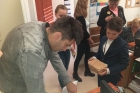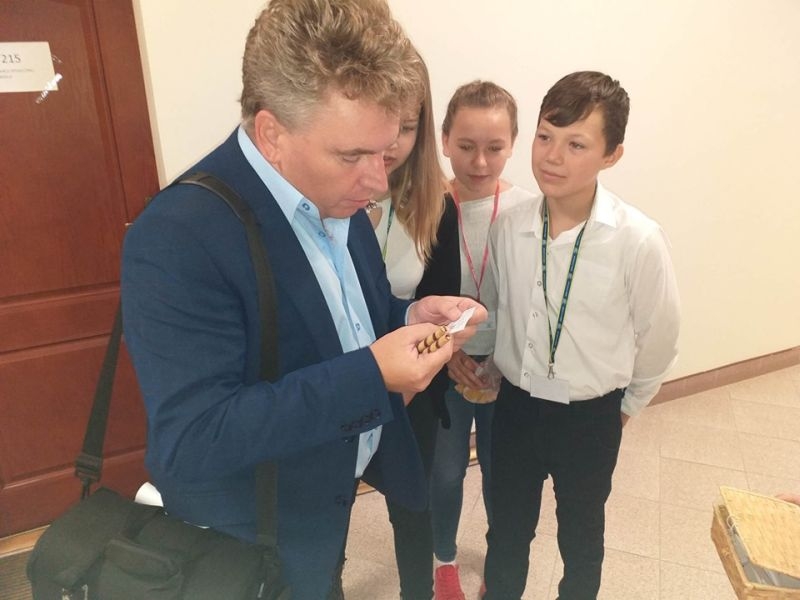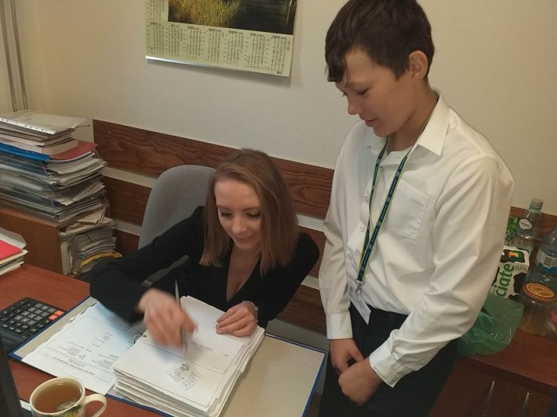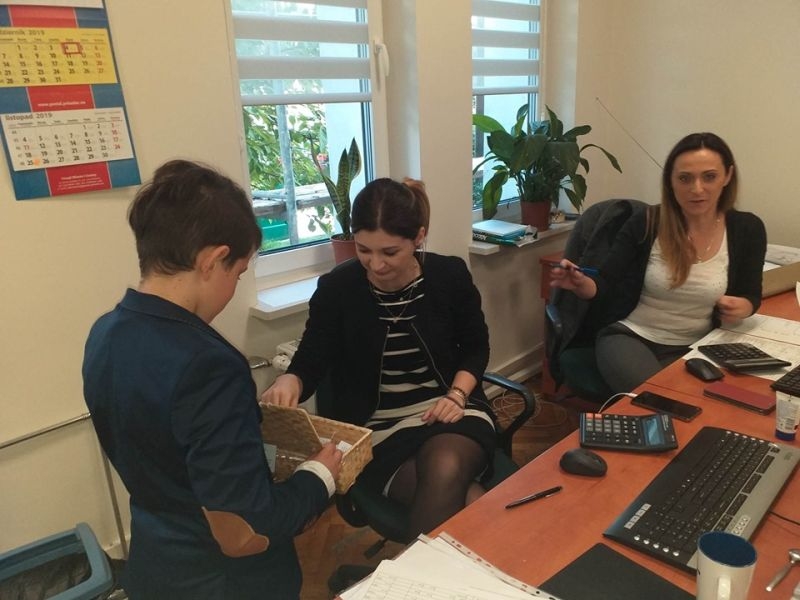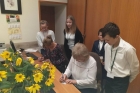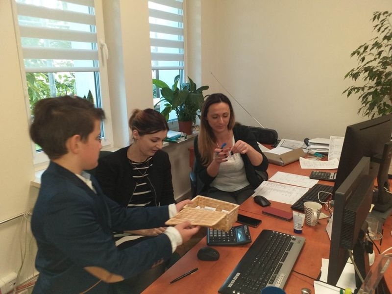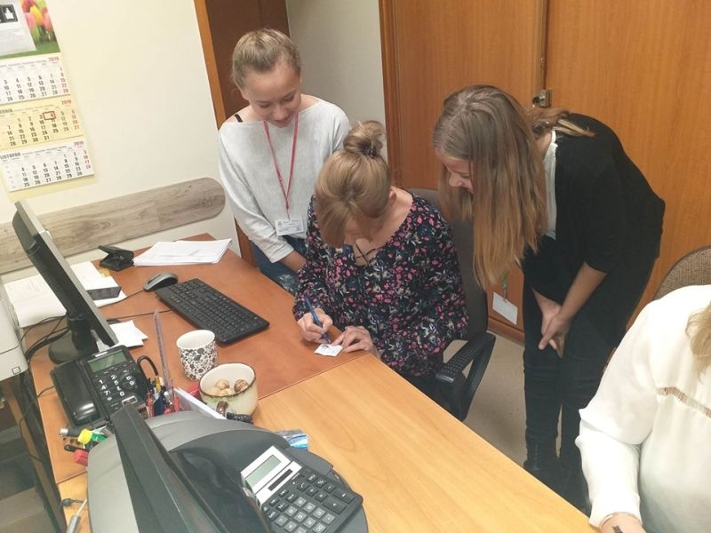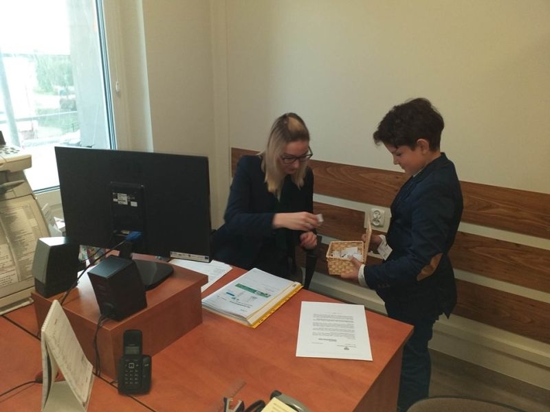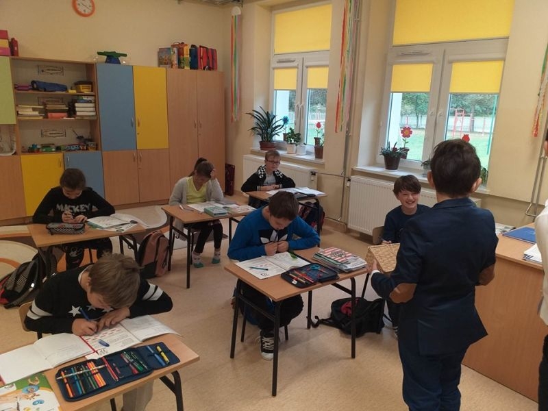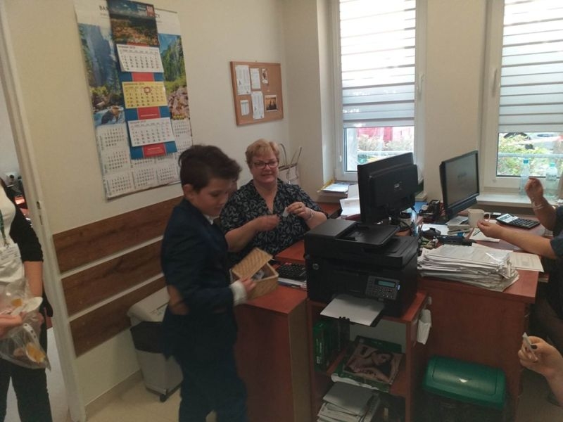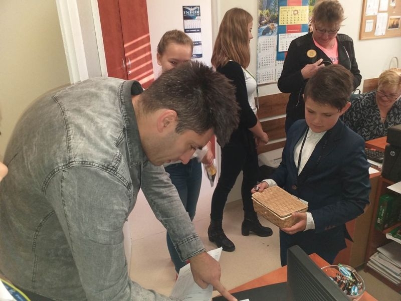 W tym roku uczniowie nie poprzestali tylko na wzbudzeniu małego dreszczyku emocji wśród osób przebywających w naszej placówce. Dzięki uprzejmości pana Jacka Tarnowskiego Burmistrza Miasta i Gminy Połaniec nasza komisja miała możliwość przeprowadzenia „egzaminu" wśród pracowników Urzędu Miasta i Gminy. Misja uczniów, początkowo nieco zestresowanych, przebiegała w pełnej życzliwości atmosferze. Pan burmistrz oraz pracownicy gminy chętnie poddali się odpytaniu i pomyślnie zdali egzamin. Teraz jesteśmy pewni, że finanse samorządowe oraz działania inwestycyjne są w dobrych rękach! Serdecznie dziękujemy za miłe przyjęcie i poważne potraktowanie naszej inicjatywy. Mamy nadzieję, że mogliście Państwo przypomnieć sobie nie tylko tabliczkę mnożenia, ale też wrócić myślami do radosnych, szkolnych czasów oraz wspomnieć dziwne uczucie nagłego przyśpieszenia bicia serca pod tablicą. Tym goręcej gratulujemy poprawnych odpowiedzi.