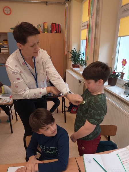 W tym dniu zostały przeprowadzone przez Uczniowskie Komisje Egzaminacyjne sprawdziany z tabliczki mnożenia. Uczniowie pod czujnym okiem pani Justyny Janeczek – nauczyciela matematyki od samego rana egzaminowali starszych i młodszych kolegów oraz pracowników szkoły. I chociaż zdarzały sie chwile zawahania i momenty niepewności, wywołane z pewnością stresem egzaminacyjnym, wszyscy zaliczyli „ odpytkę" śpiewająco. Egzamin szkolny nie kończył przedsięwzięcia.