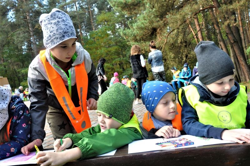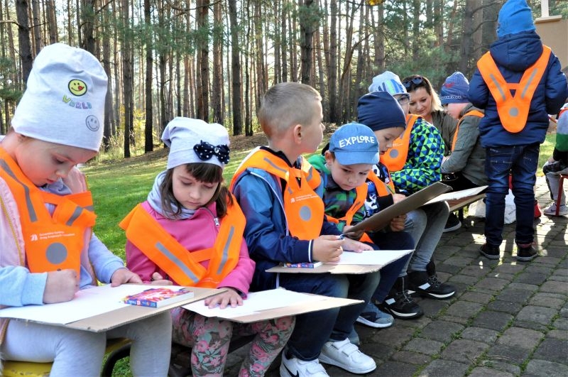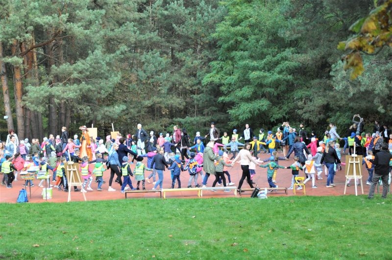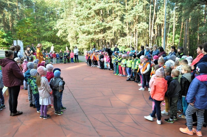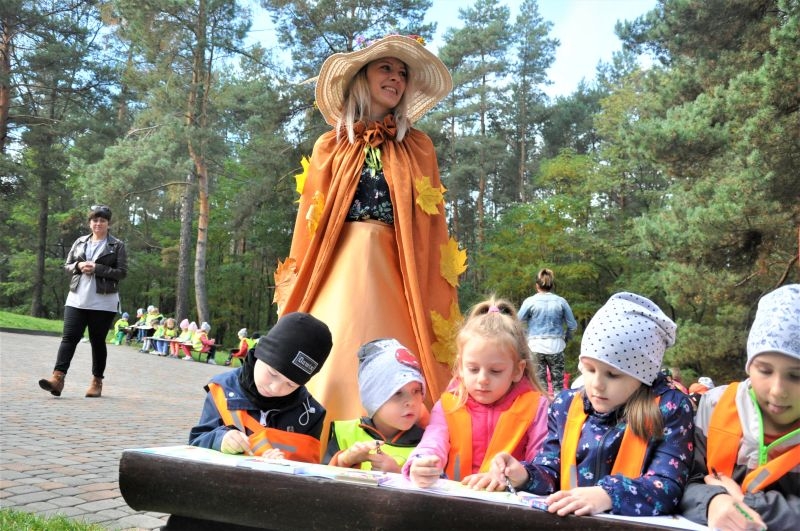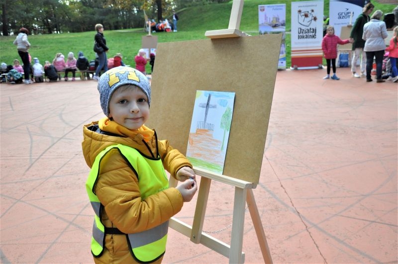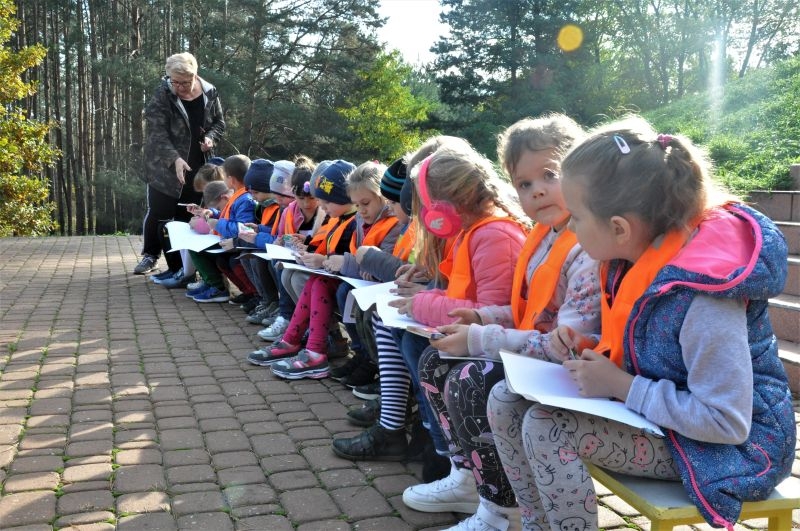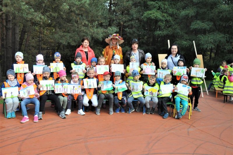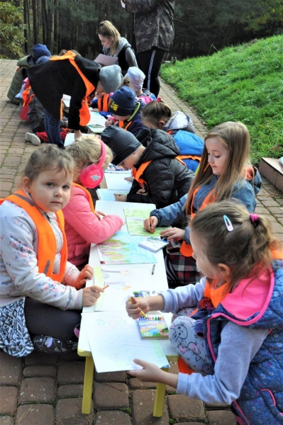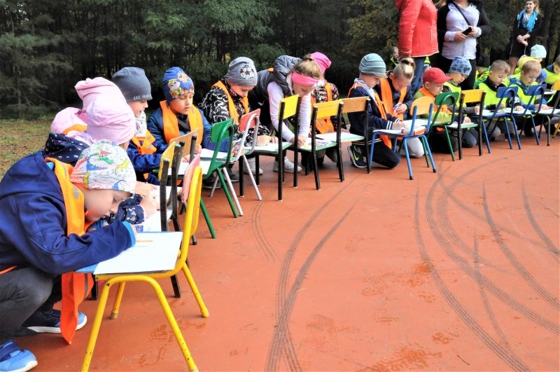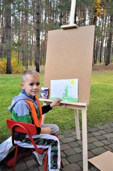 Przy blasku październikowego słońca w leśnej scenerii pod Kopcem Kościuszki, dnia 15.10.2019r. odbył się „Przedszkolny plener rysunkowy” pt: „Jesień oczami przedszkolaków”. Z ogromnym zapałem i entuzjazmem dzieci rysowały otaczający je las i historyczny Kopiec Kościuszki. W tym przedsięwzięciu wzięły udział przedszkolaki z Połańca, Łubnic,Ruszczy i Zrębina. A wszystko to odbyło się w ramach projektu „Dla rzeki i lasu nie żałuję czasu”. Aby nikomu nie zabrakło zapału i inwencji twórczej czuwała Pani Jesień i Przyjaciel Przedszkola, Pan Konstanty Michorowski, który jest nie tylko kosynierem ale i artystą, rzeźbiarzem amatorem. Podczas pleneru powstały piękne prace, odzwierciedlające niepowtarzalne barwy jesieni. Dużą radość sprawiła dzieciom możliwość rysowania przy sztalugach malarskich, które zostały zakupione ze środków programu „Działaj Lokalnie” Polsko - Amerykańskiej Fundacji Wolności realizowanego przez Akademię Rozwoju Filantropii w Polsce oraz Fundacji Aktywizacji i Rozwoju w Staszowie. Dzięki temu wsparciu mogliśmy również wręczyć dzieciom nagrody oraz pamiątkowe dyplomy.