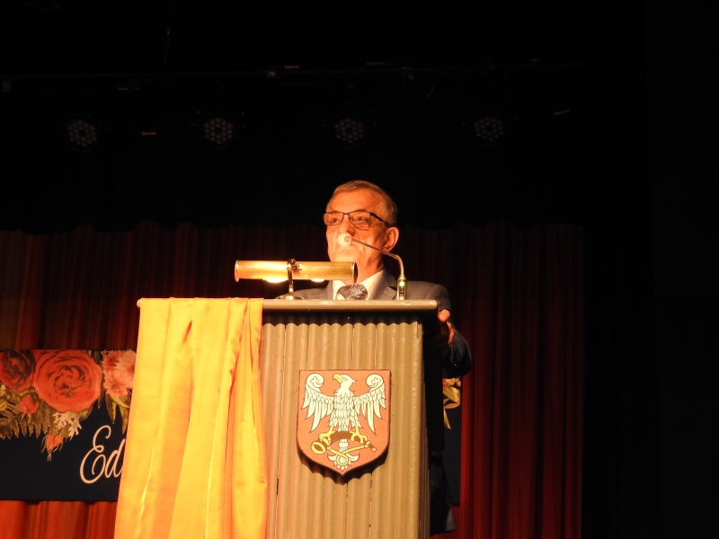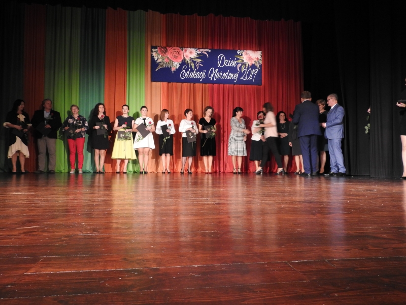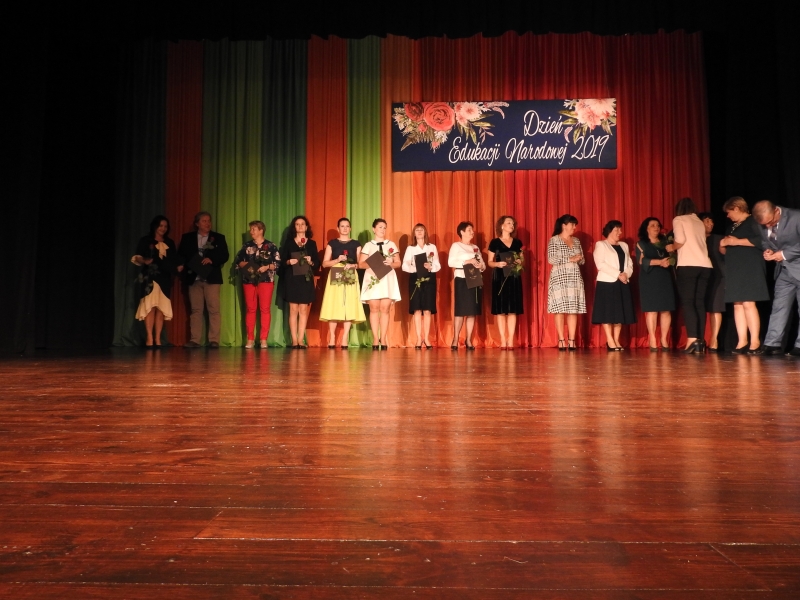 Uroczystość prowadziły nauczycielki - Magdalena Pedyńska i Emilia Dudek. Rangę obchodów Dnia Edukacji Narodowej docenili licznie przybyli goście. Obecni byli m.in. Burmistrz Miasta i Gminy Połaniec Jacek Tarnowski, Skarbnik Gminy Małgorzata Żugaj, Przewodniczący Rady Miejskiej – Stanisław Lolo wraz z radnymi oraz Pan Zbigniew Brzeski Prezes Oddziału Związku Nauczycielstwa Polskiego w Połańcu. Frekwencja dopisała bowiem sala zapełniona była po brzegi. Wśród obecnych znajdowali się także nauczyciele ze szkół znajdujących się na terenie naszej gminy: Szkoły Podstawowej w Połańcu, Szkoły Podstawowej w Zrębinie, Zespołu Placówek Oświatowych w Ruszczy oraz Przedszkola Publicznego i Żłobka. Po przywitaniu wszystkich gości jako pierwszy głos zabrał Burmistrz Miasta i Gminy Połaniec Jacek Tarnowski. W swoim wystąpieniu podziękował on wszystkim nauczycielom za trud jaki wkładają w kształcenie młodego pokolenia. Co więcej zaznaczył, iż sukcesem prężnie działających placówek oświatowych jest dobra współpracy szkół z samorządem. Podkreślił również, że sukcesy jakie zdobywają wychowankowie naszych placówek oświatowych świadczą o spełnianiu przez nie swojej roli. Kolejnym przemawiającym był Przewodniczący Rady Miejskiej Stanisław Lolo. W swojej mowie Przewodniczący Rady zapewnił o otwarciu samorządu na potrzeby i problemy placówek oświatowych. Padły słowa potwierdzające rolę nauczycieli w życiu swoich uczniów i podziękowań za wykonywaną pracę. Zbigniew Brzeski, Prezes połanieckiego oddziału związku nauczycielstwa polskiego w swojej przemowie skupił się na formalnych kwestiach zawodu nauczyciela. Na zakończenie natomiast wszystkim pedagogom życzył wszystkiego najlepszego i sukcesów w wykonywanej pracy. Głos zabrała również przedstawicielka Rady Rodziców składając wszystkim nauczycielom podziękowania i najlepsze życzenia. Po przemowach przyszedł czas na część artystyczną. Obecni mogli podziwiać występ podopiecznych CKiSz w Połańcu, grupy Digress I, która została mistrzem świata na międzynarodowych zawodach w Płocku. Trzech połanieckich nauczycieli poszczycić się mogło nagrodami szczebla państwowego: