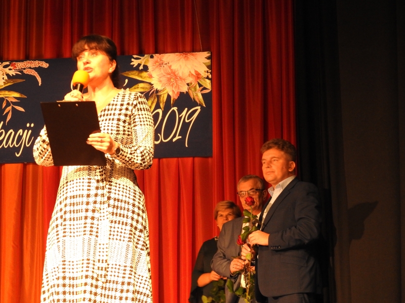 Nagrody swoim pracownikom przyznali również Dyrektorzy Szkół oraz Kierownik Samorządowego Centrum Usług Wspólnych Agnieszka Trela. Międzyczasie wszyscy podziwiać mogli również występ Karola Grabowskiego, który swym śpiewem zaczarował praktycznie całą salę. Po zakończeniu wszystkich wystąpień obecnych zaproszono na drobny poczęstunek. Całe spotkanie przebiegało w atmosferze przyjaźni i zadowolenia.