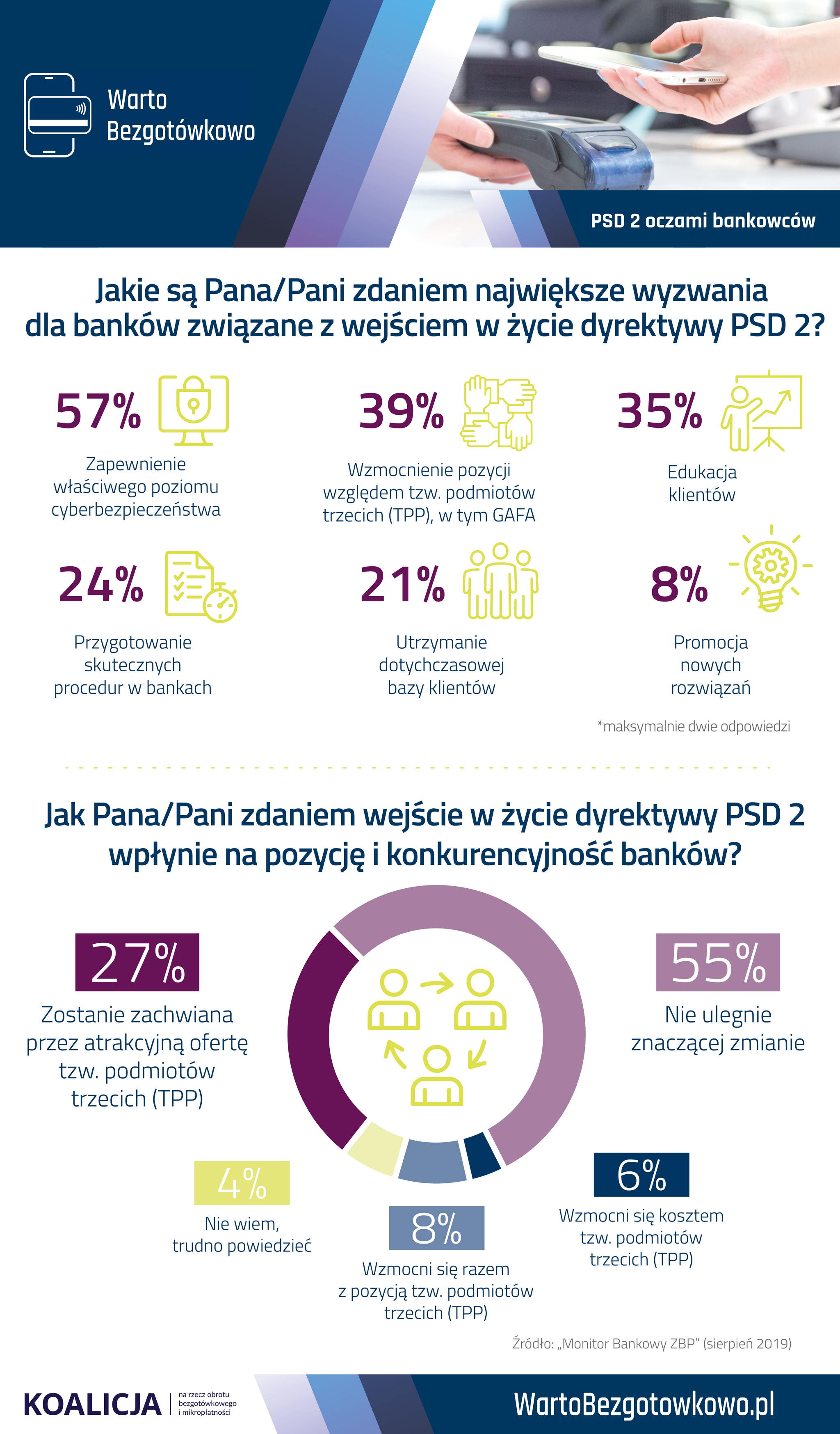 Inauguracja tegorocznej kampanii „Warto Bezgotówkowo” przypada w miesiąc po wejściu w życie zmian wynikających z unijnej dyrektywy PSD2, która dotyczy wszystkich użytkowników bankowości elektronicznej w Polsce. Jedną z nowości jest m.in. częstsze wpisywanie kodu PIN przy okazji płatności kartą – również w przypadku szóstej z kolei transakcji poniżej 50 zł, dotychczas w ogóle niewymagających dodatkowej autoryzacji. Jak wynika z badania, 50-złotowy limit na płatność bez podania PIN-u jest najbardziej preferowany przez 43% Polaków. Niewiele mniej osób byłoby za dwukrotnym zwiększeniem tego limitu (40%). Powyżej 100 zł bez dodatkowej autoryzacji chciałoby płacić jedynie 14% ankietowanych.
