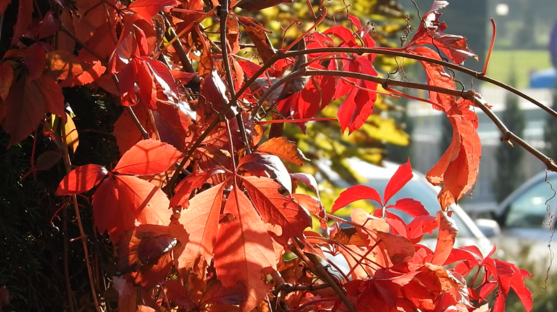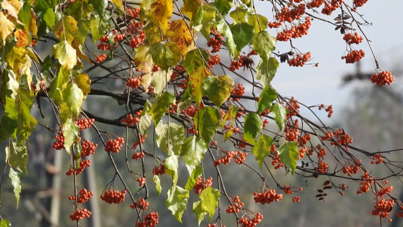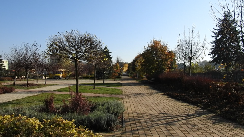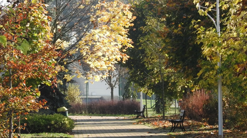 Jesień w pełni. Kolejne drzewa zmieniają barwę liści z zielonych na odcienie żółci, czerwieni oraz brązu. Spacerując kolorowymi alejkami można usłyszeć radosne ćwierkanie sikorek, szczygłów i innych ptaków, które przyleciały do miasta z lasu, aby odwiedzić zawieszone dla nich karmniki. Tam gdzie opadły liście, gałązki stroją się w soczyste owoce dzikiej róży oraz w jarzębinę.