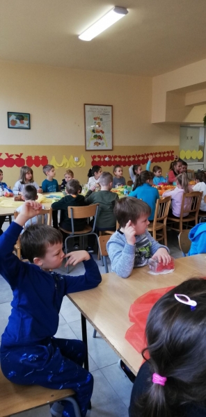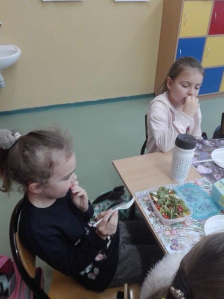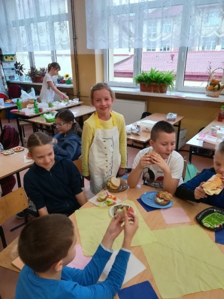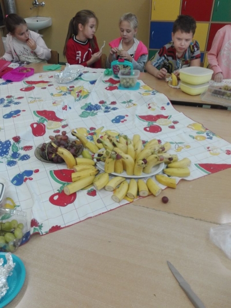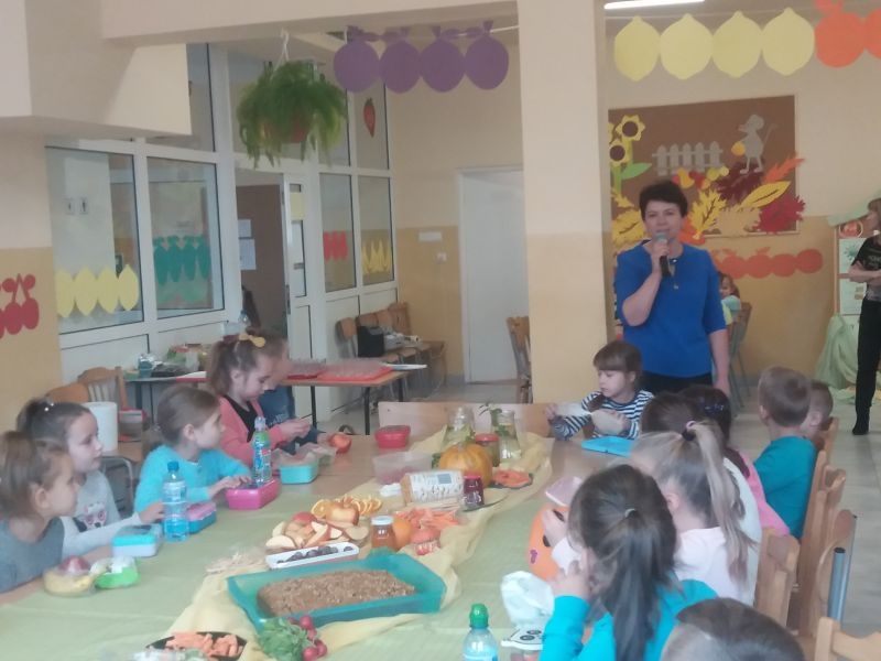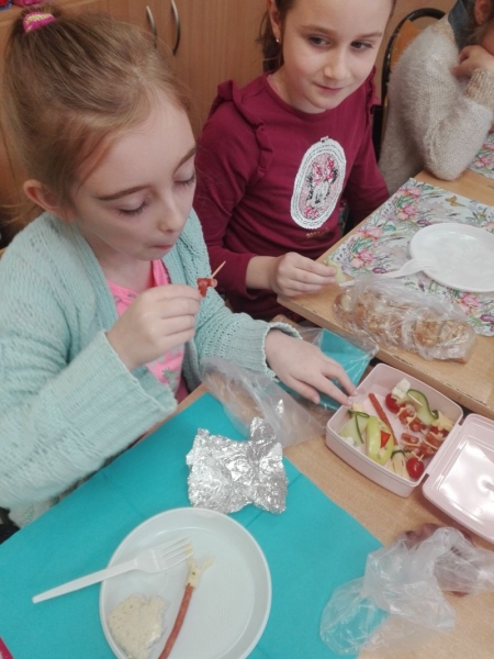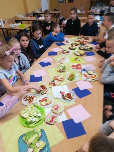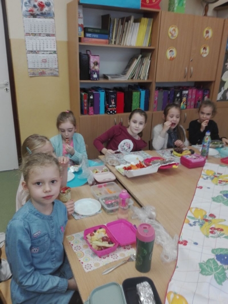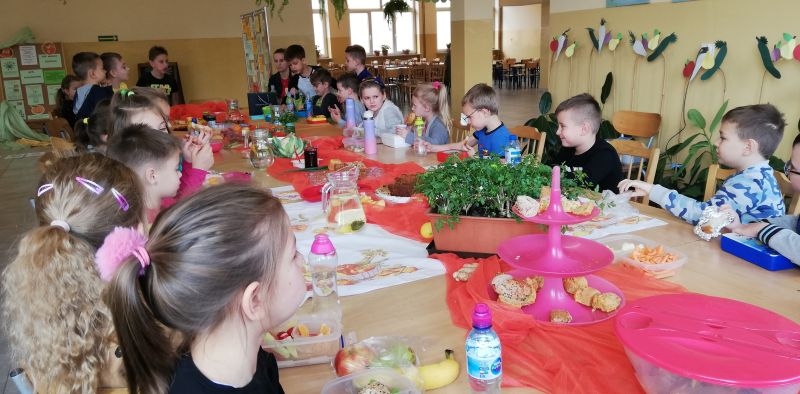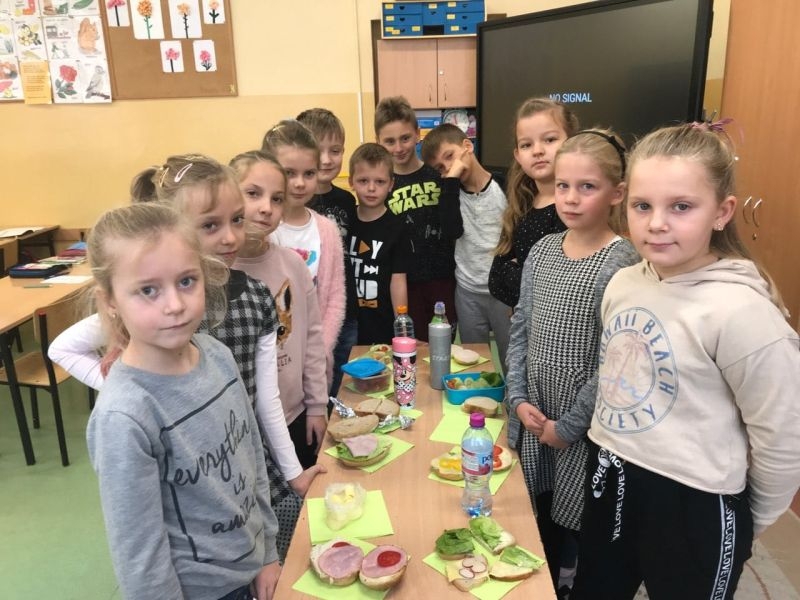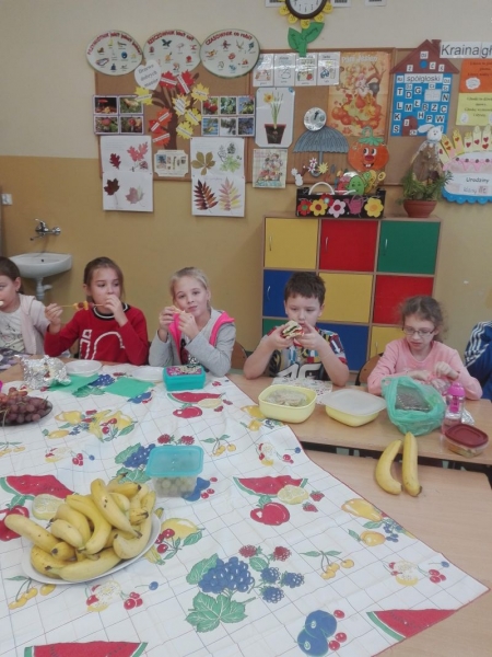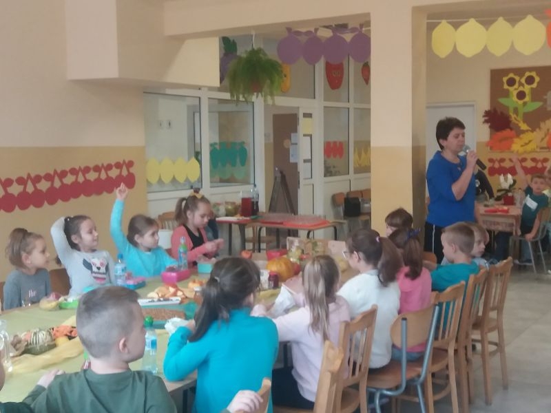 Aby wypromować zdrowy styl życia wśród dzieci i młodzieży, w dniu 8 listopada społeczność szkoły podstawowej w Połańcu włączyła się w europejskie obchody Dnia Zdrowego Śniadania. W ramach przygotowań do tego dnia, dzień wcześniej nadano komunikat przez radiowęzeł szkolny, przygotowano wystawkę promującą ideę spożywania drugiego, zdrowego śniadania w szkole, oraz przygotowano dekorację stołówki szkolnej. Ósmego listopada, wszyscy uczniowie klas pierwszych zostali zaproszeni przez wychowawców i dzieci ze świetlicy szkolnej na uroczyste zdrowe śniadanie do stołówki szkolnej. Przy pięknie nakrytych stołach ze zdrową żywnością, uczniowie zjedli ze swoimi wychowawcami zdrowe kanapki, warzywa, owoce, sałatki przygotowane przez rodziców. Spotkanie było okazją do wspólnej rozmowy, zabawy i rozwiązywania zagadek o zdrowym odżywianiu. Wiedza dzieci na ten temat pozytywnie nas zaskoczyła, wykazały się znajomością nazw warzyw i owoców, nawet tych egzotycznych. Ważnym aspektem spotkania był problem marnowania żywności, o którym informowała nas zrobiona wystawka. W czasie śniadania towarzyszyła nam muzyka - piosenki o zdrowym odżywianiu. Oprócz działań przygotowanych w stołówce szkolnej odbyły się także zdrowe śniadania w klasach. Wychowawcy klas wspólnie z uczniami zorganizowali zdrowe śniadanie w swoich oddziałach klasowych. Dziękujemy wszystkim uczestnikom projektu za zaangażowanie i pomoc. Zapraszamy do obejrzenia relacji fotograficznej.