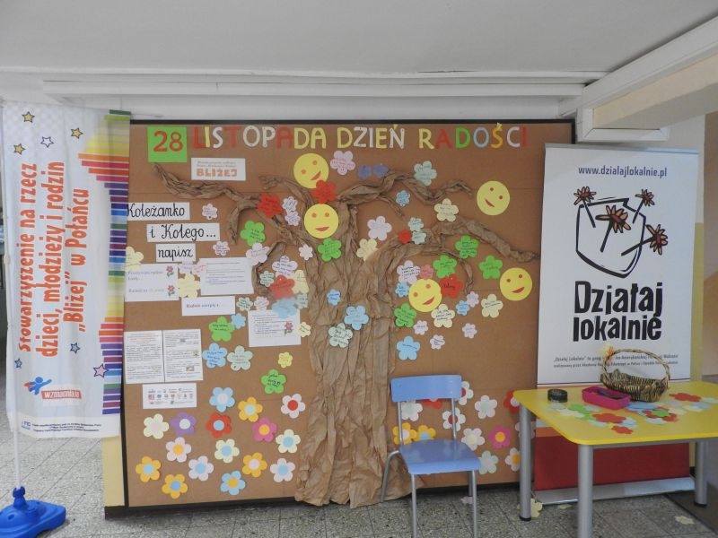 I w końcu... 28.11.2019 r. - DZIEŃ RADOŚCI - Nasze drzewo na holu stało się bardzo kolorowe i kwiatowe! Każdy mógł napisać - czym dla niego jest radość.