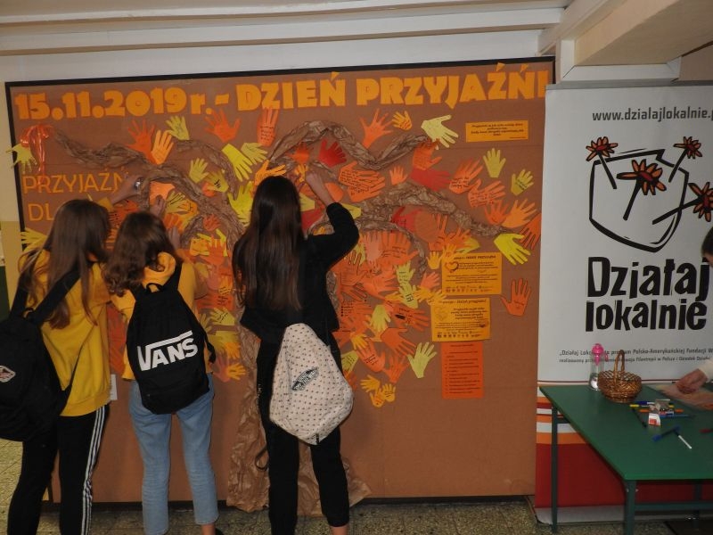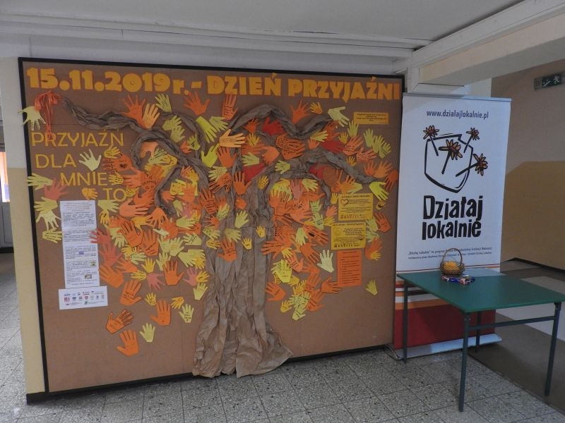 - 15.11.2019 r. DZIEŃ PRZYJAŹNI – w ten dzień w szkole zrobiło się pomarańczowo. Zaangażowanie dzieci i młodzieży było ogromne. Nasze drzewo przyjaźni