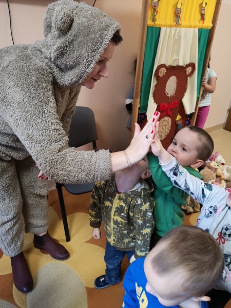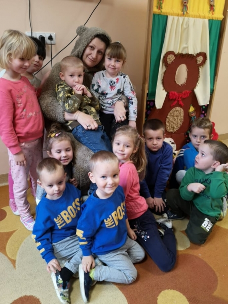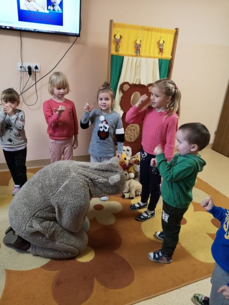 Dzieci obejrzały prezentację przypominającą historię maskotki, poznały wiele ciekawostek dotyczących niedźwiedzi. Przypomnieliśmy sobie również bajki, których głównymi bohaterami są właśnie misie.