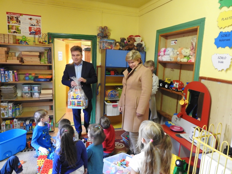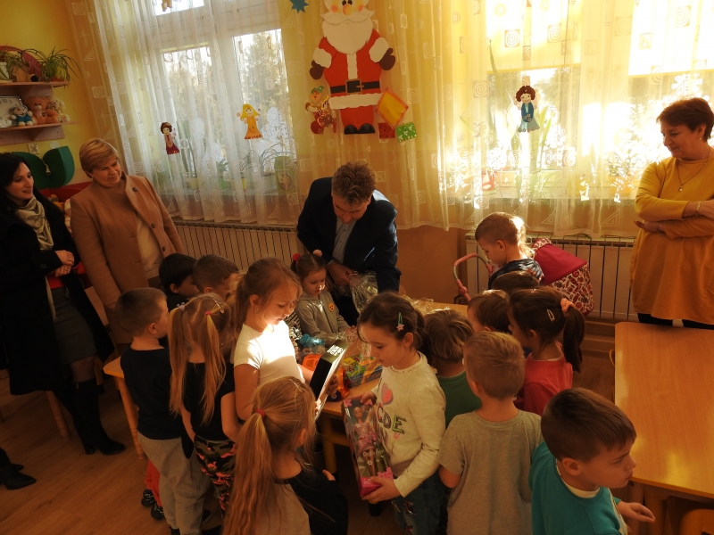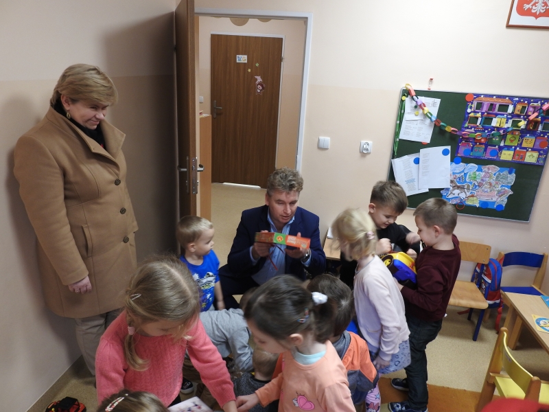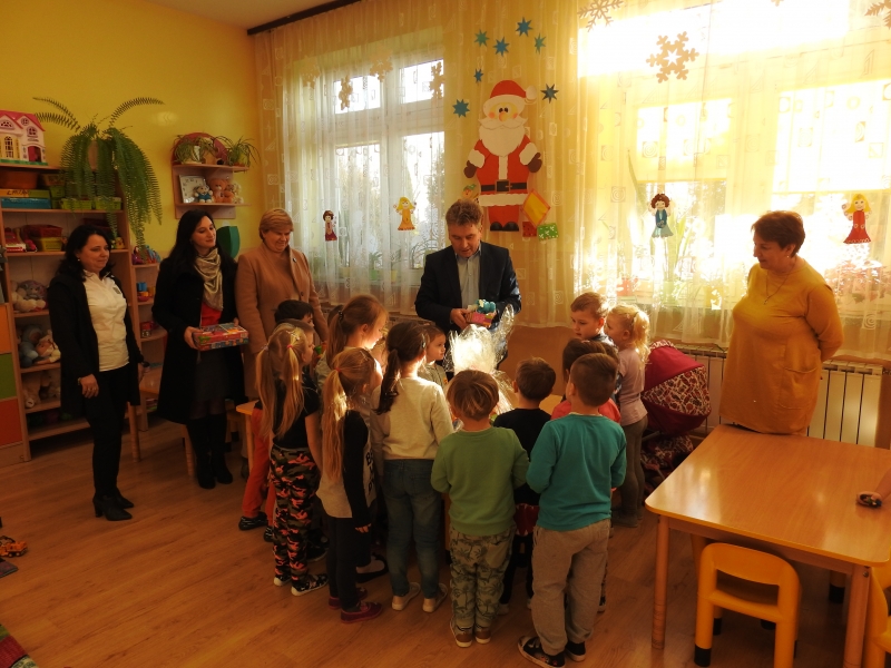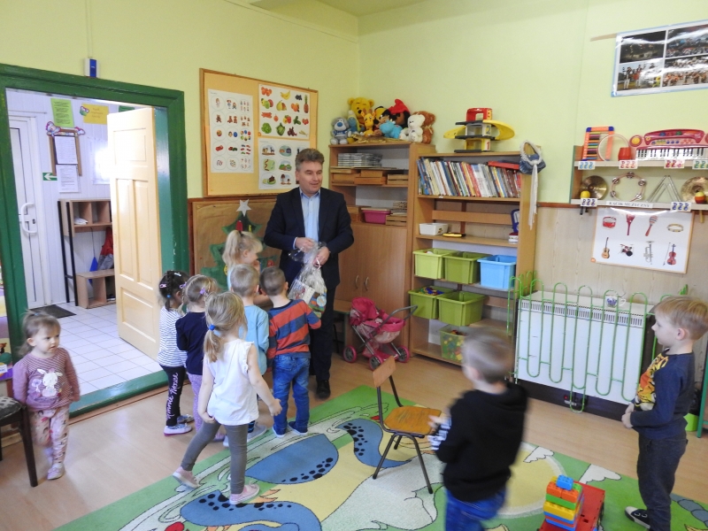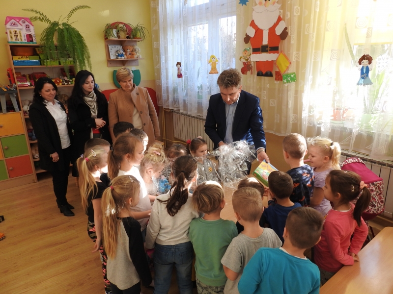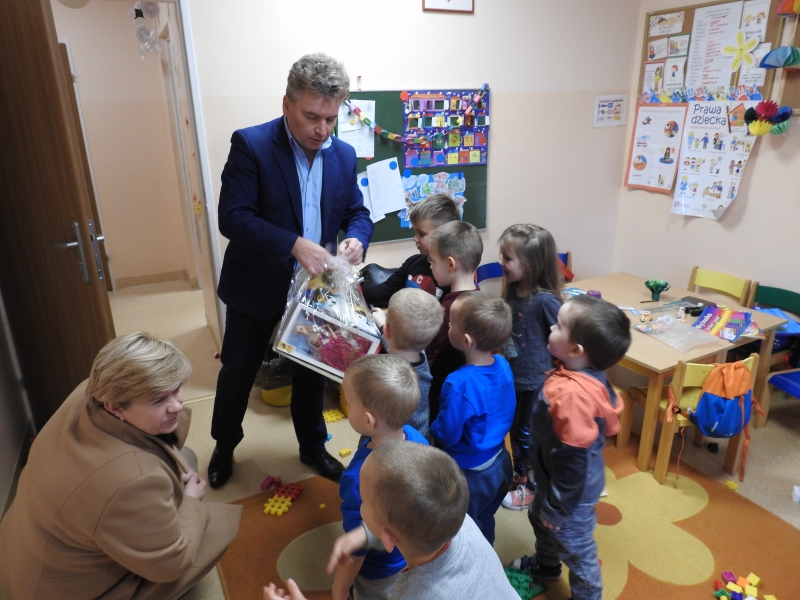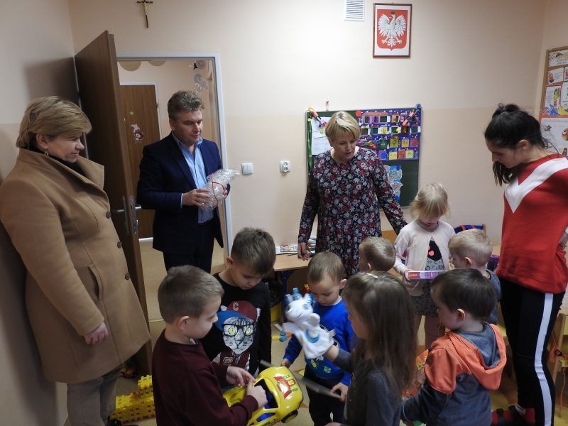 Dzisiaj 8 stycznia 2020 r. Burmistrz Miasta Pan Jacek Tarnowski wraz z Panią Skarbnik Małgorzatą Żugaj i radną Joanną Witek postanowili sprawić Mikołajkową niespodziankę najmłodszym mieszkańcom gminy. Z tej okazji odwiedzili Przedszkole Publiczne w Połańcu przy ul. Kościelnej, Przedszkole w Zrębinie i Przedszkole w Zespole Placówek Oświatowych w Ruszczy. Wręczyli przedszkolakom prezenty. Dzieci były bardzo szczęśliwe, pięknie dziękowały, śpiewały piosenki, a najlepszym wyrazem były ich uśmiechnięte buźki. Świąteczne upominki dotrą z pewnością do wszystkich najmłodszych podopiecznych placówek oświatowych w naszej gminie.