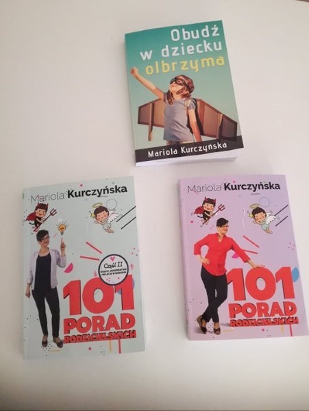 w których za otrzymane polubienia pod komentarzami wygrały w pierwszym konkursie trzy książki M. Kurczyńskiej „Obudź w dziecku olbrzyma”,”101 porad rodzicielskich część 1:potencjał intelektualny i emocjonalny dzieci oraz emocje przy stole”,”101 porad rodzicielskich część 2:rodzic, rodzeństwo i relacje w rodzinie” pozycje książkowe, które pomogą zrozumieć świat widziany oczyma dziecka i utrwalić prawidłowe postawy społeczne.