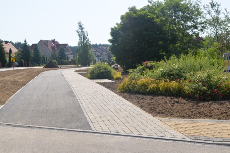 Obszar D budowa obiektów małej architektury i zagospodarowanie zieleni na ul. Widokowej (budowa ścieżki rowerowej z chodnikiem, ławki, kosze na śmieci, nasadzenie kwiatów, trawników, drzew, krzewów i rabat)