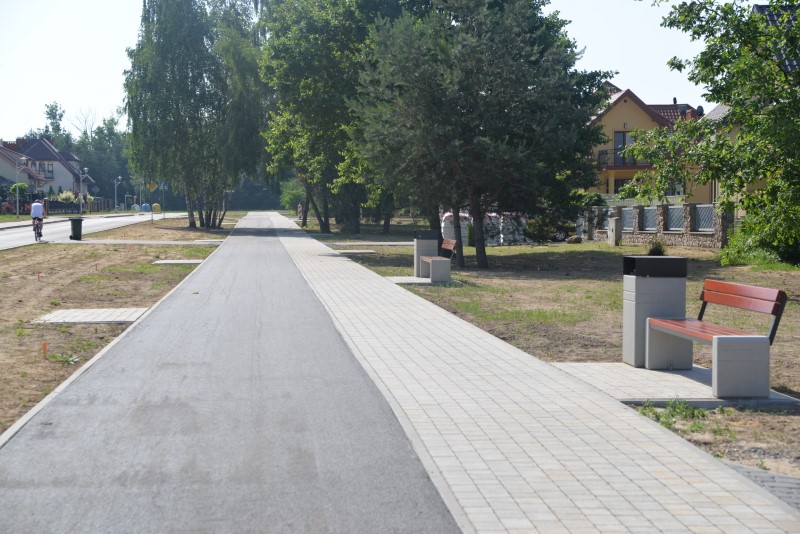 Obszar A budowa ścieżki rowerowej z chodnikiem i obiektami małej architektury oraz zagospodarowanie zieleni na ul .Jana Pawła II (nasadzenie kwiatów, rabat ,drzew, krzewów i trawników)