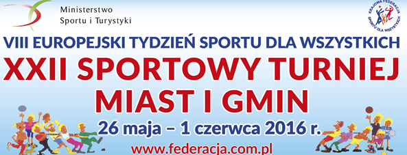 W dniach 26.05-1.06 odbędzie się XXII edycja Sportowego Turnieju Miast i Gmin – STMiG 2016. Największa impreza sportu masowego w Polsce rozgrywana w ramach VIII Europejskiego Tygodnia Sportu dla Wszystkich.Sportowy Turnieju Miast i Gmin jest polską wersją Światowego Dnia Sportu – Challenge Day, organizowanego corocznie.W Sportowym Turnieju Miast i Gmin startować mogą wszyscy mieszkańcy miasta.