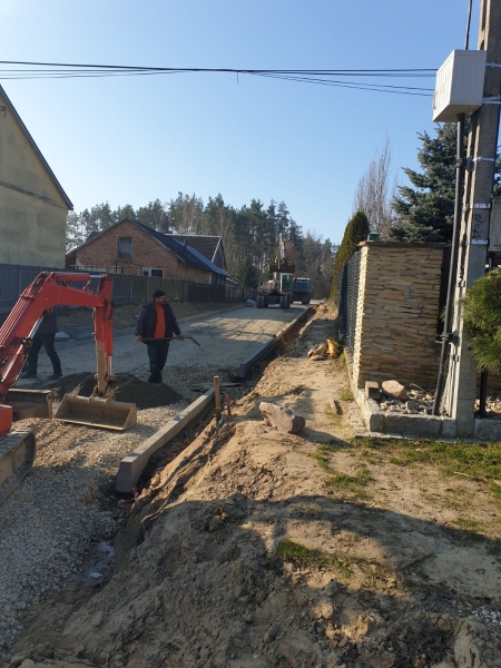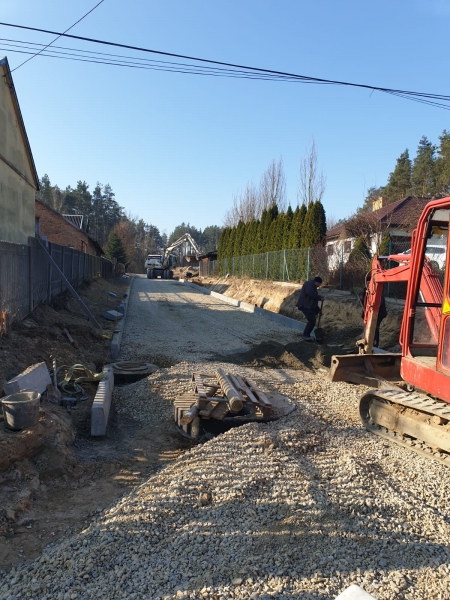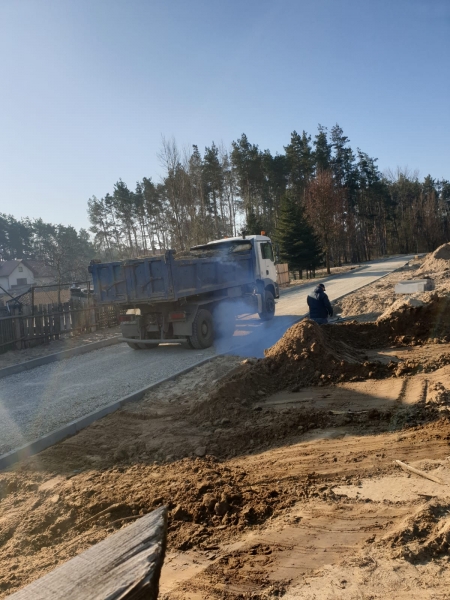 Prace przebiegają sprawnie. Planowana data zakończenia inwestycji to 30 wrzesień 2021 roku. W zakres przedmiotowego zadania wchodzi m.in: wykonanie koryta pod drogę , stabilizacja cementowo-piaskowa, krawężniki. Obecnie trwają prace polegające na utwardzeniu nawierzchni i przygotowaniu jej pod powierzchnię asfaltową, zjazdy na działki, utwardzenie poboczy. Technologia wykorzystana do budowy drogi gwarantuje długie użytkowanie bez konieczności w przyszłości prowadzenia uciążliwych remontów.