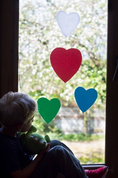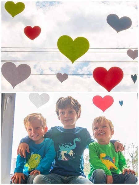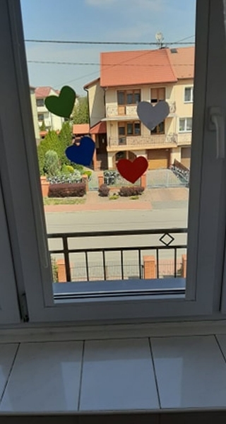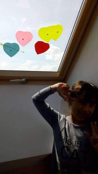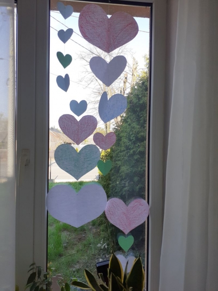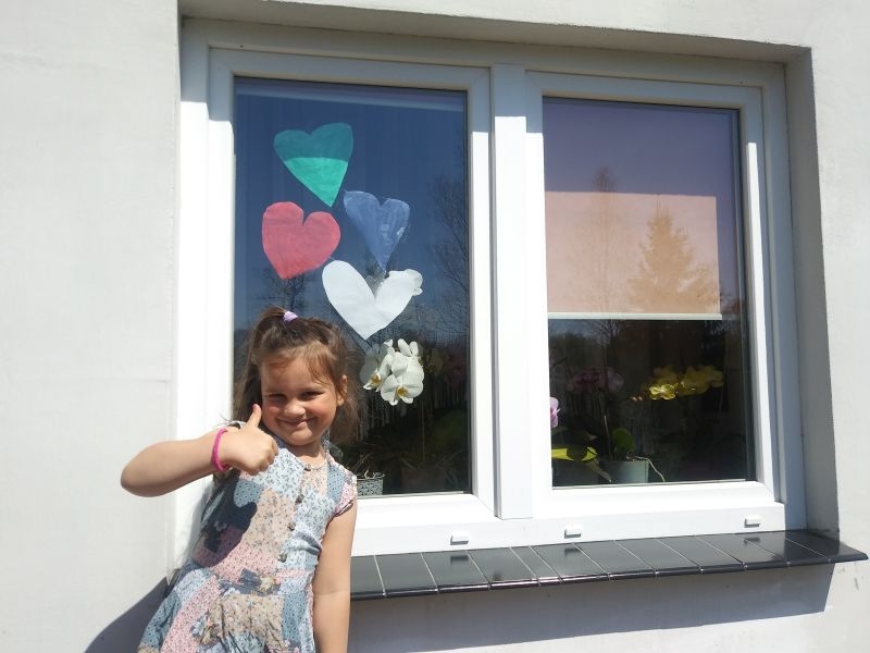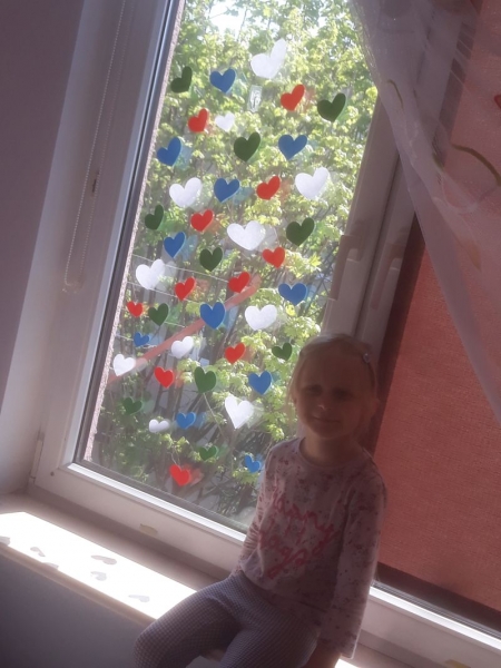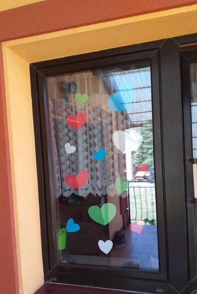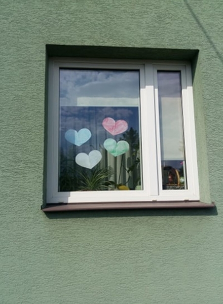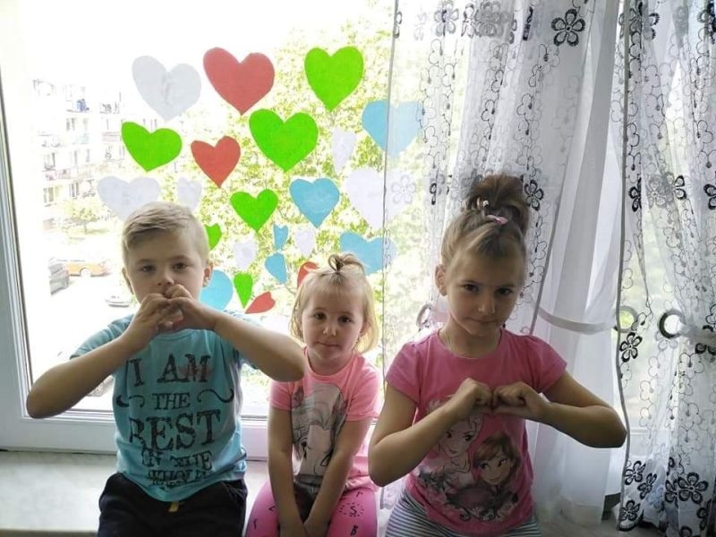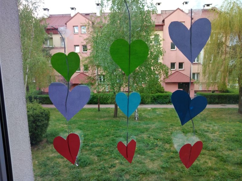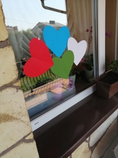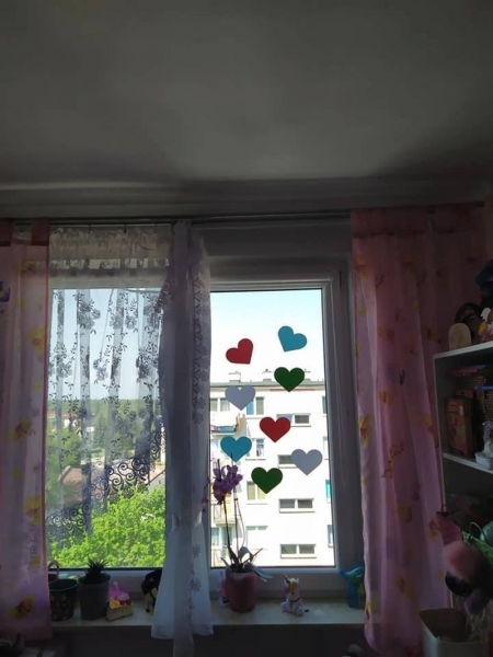 Właśnie tego dnia, w środę dzieci udekorowały okna domów, mieszkań kolorowymi serduszkami, w czterech kolorach, które symbolizują różne osoby.