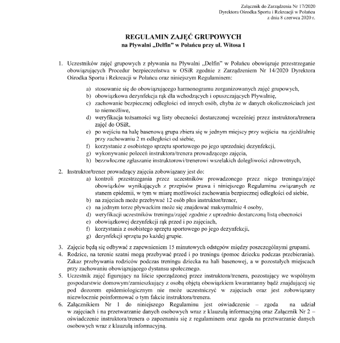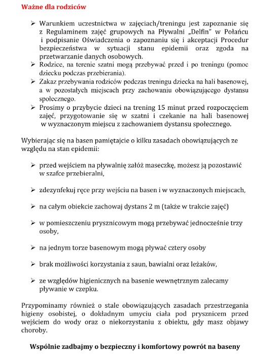 WZNOWIENIE ZAJĘĆ NA PŁYWALNI DELFIN