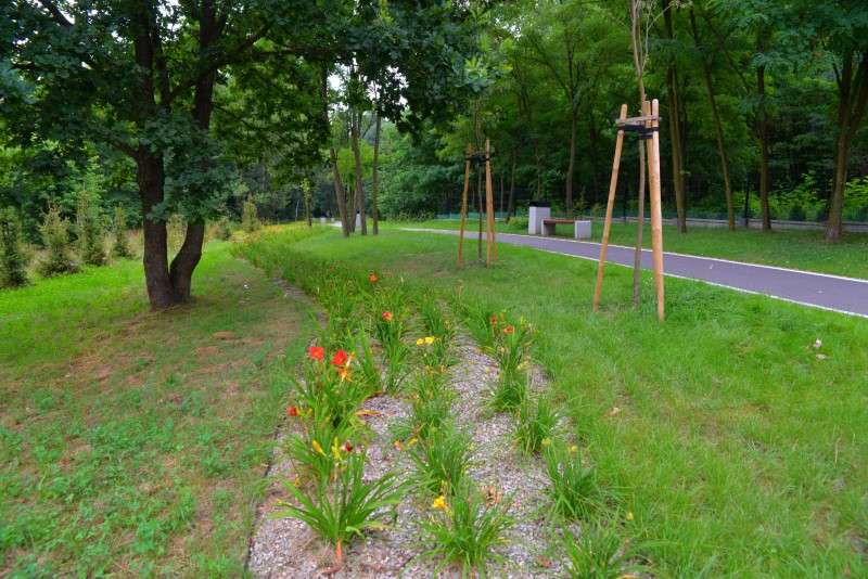 Piękny, zielony skwer zachęca do spaceru i odpoczynku wśród leśnej przyrody.
