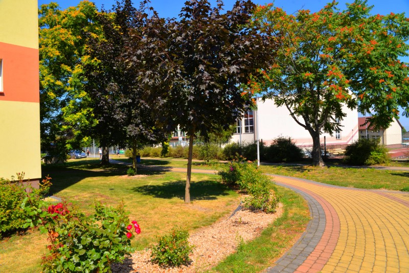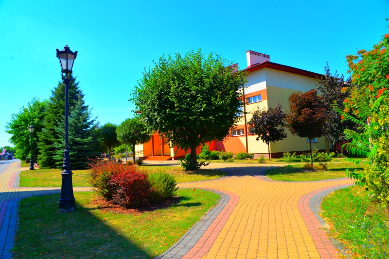Zielony skwer wokół Centrum Kultury i Sztuki w Połańcu