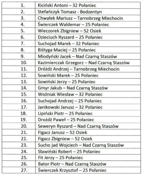 Lista zawodników, którzy zajęli poszczególne miejsca: