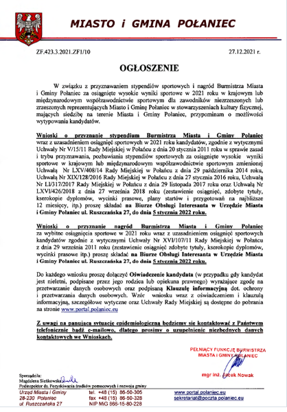 23 grudnia z wizytą u pełniącego funkcję Burmistrza Miasta i Gminy Połaniec – Pana Jacka Nowaka w Urzędzie Miasta i Gminy gościli trenerzy i sportowcy. Koniec Roku i początek Nowego to czas podsumowań i wyznaczania kolejnych celów.