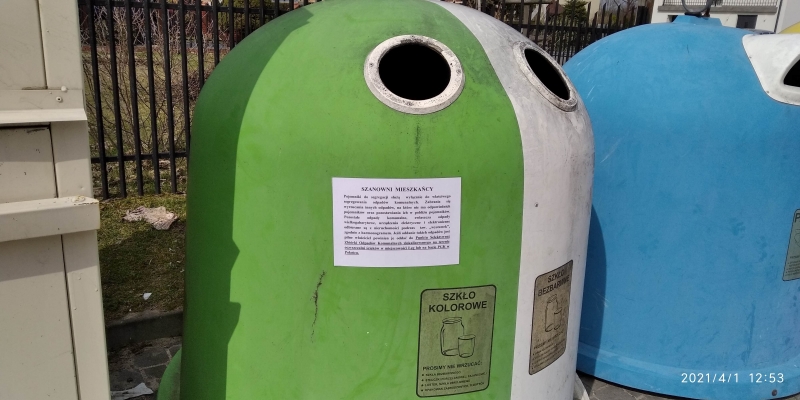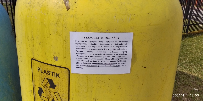W związku z otrzymanym zgłoszeniem ciągłych przypadków zaśmiecania otoczenia wokół pojemników do segregacji odpadów, zlokalizowanych w Połańcu pomiędzy ulicami Orzeszkowej i Reymonta informujemy, iż po konsultacji z mieszkańcami pojemniki zostaną usunięte.