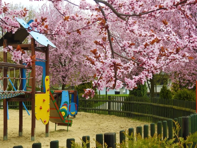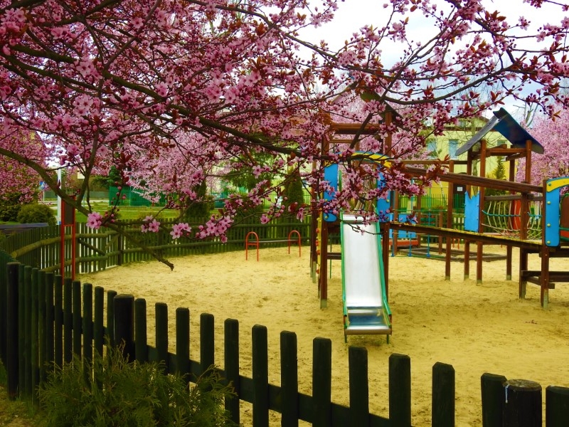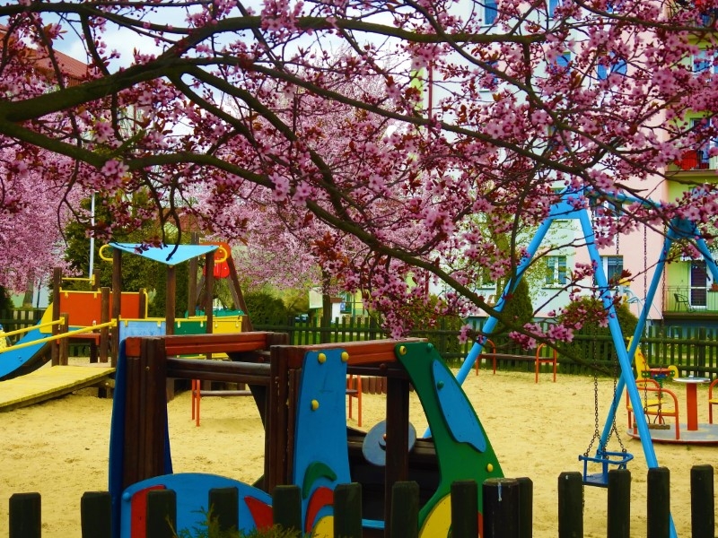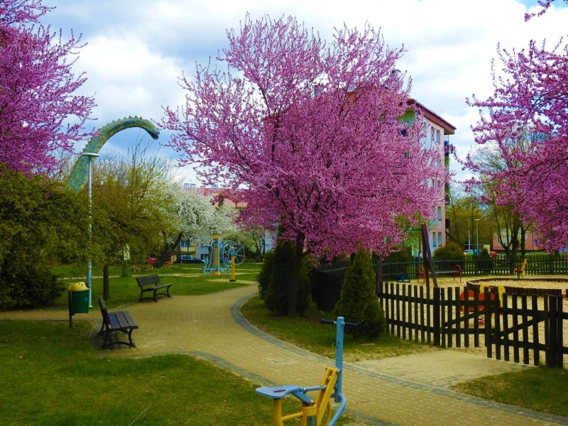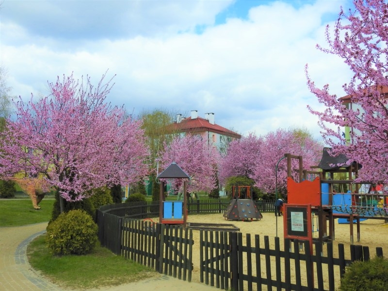 Spacerując po naszym mieście możemy zauważyć budzącą się do życia roślinność,a korony drzew owocowych obsypane są pięknymi kwiatami w kolorach bieli i różu.