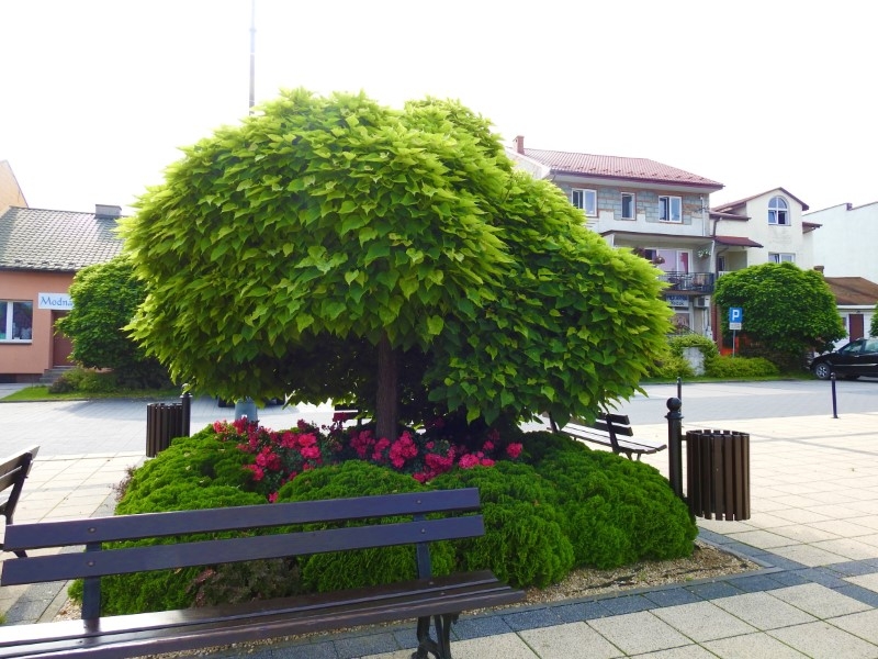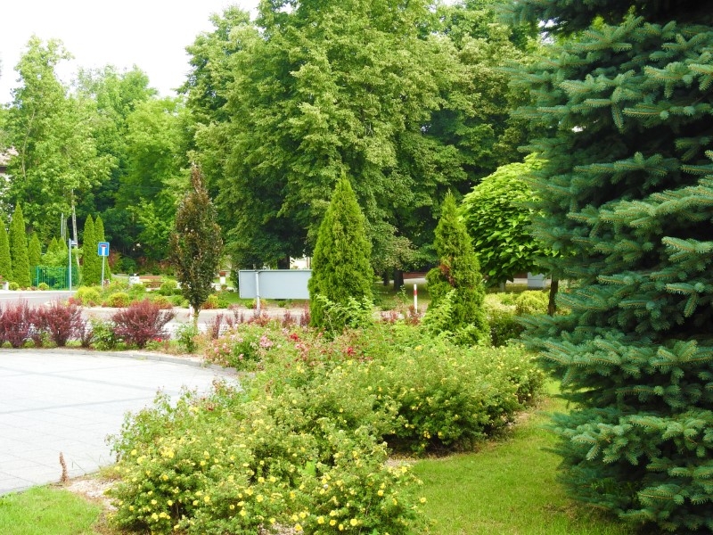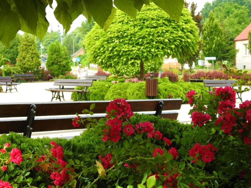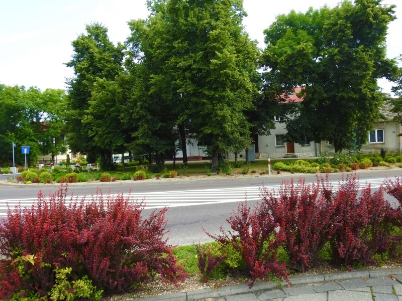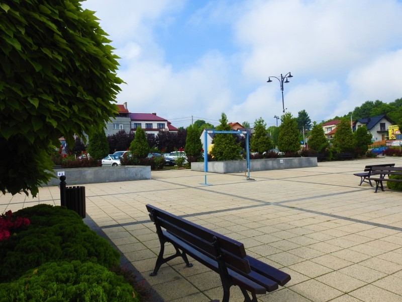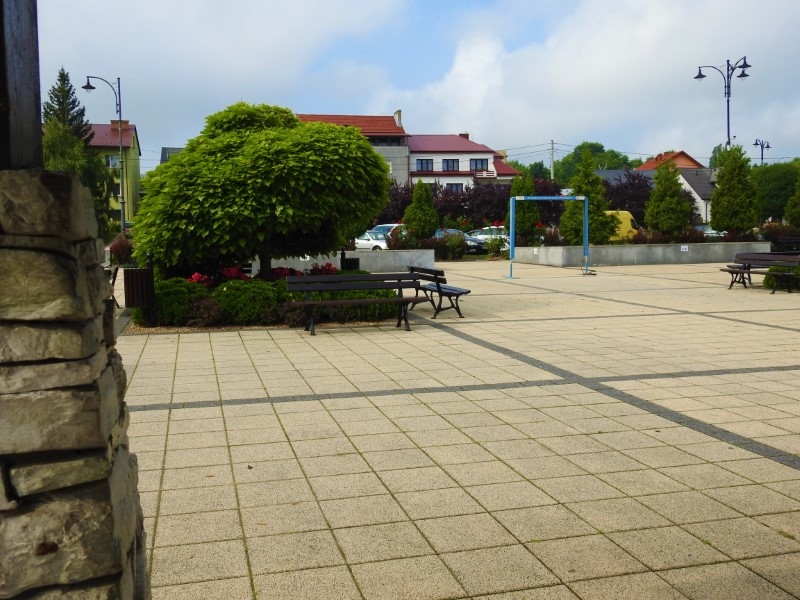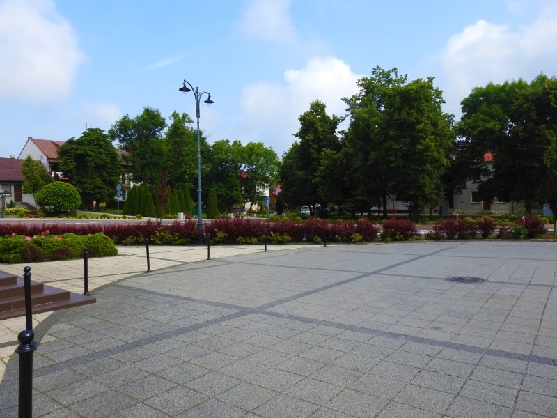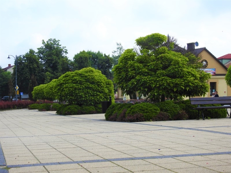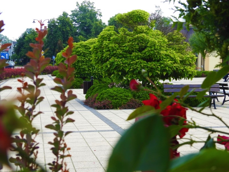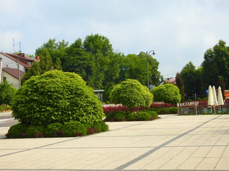 Pełen zieleni rynek w Połańcu zaprasza do spacerów i odpoczynku.