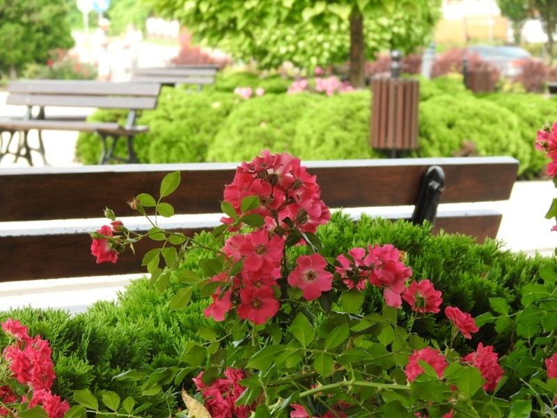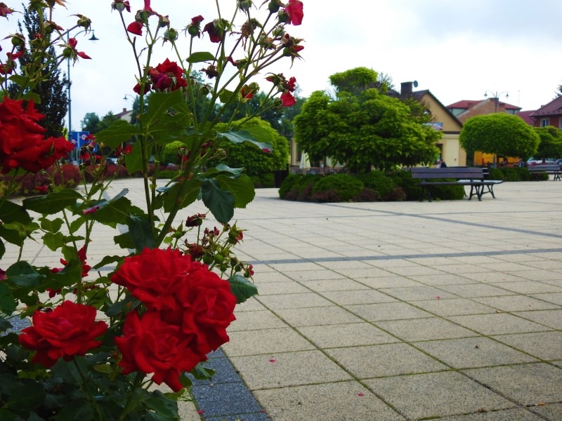 Rynek w Połańcu -pełen kwiatów i zieleni